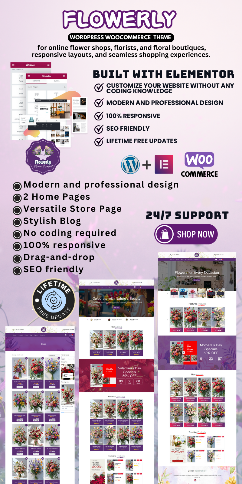 Drag and Drop Customization – Elementor: Create a stunning website effortlessly with the Elementor drag-and-drop builder. Personalize your layout, showcase floral collections, and highlight special offers—no coding needed.