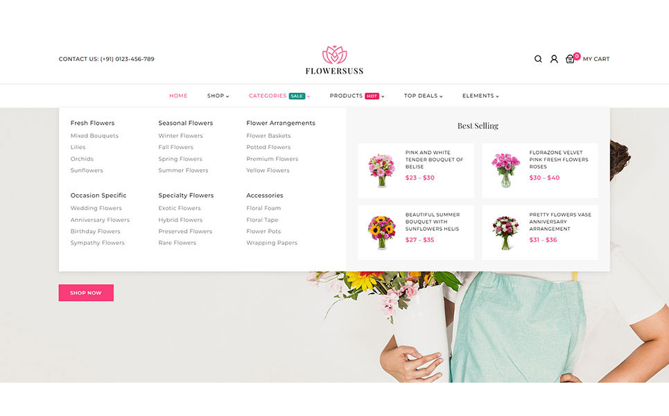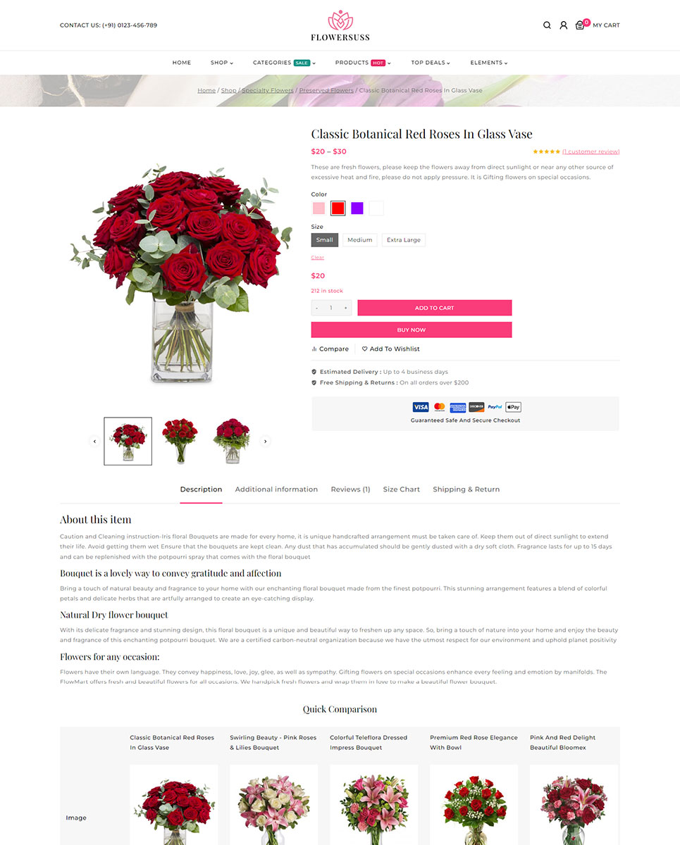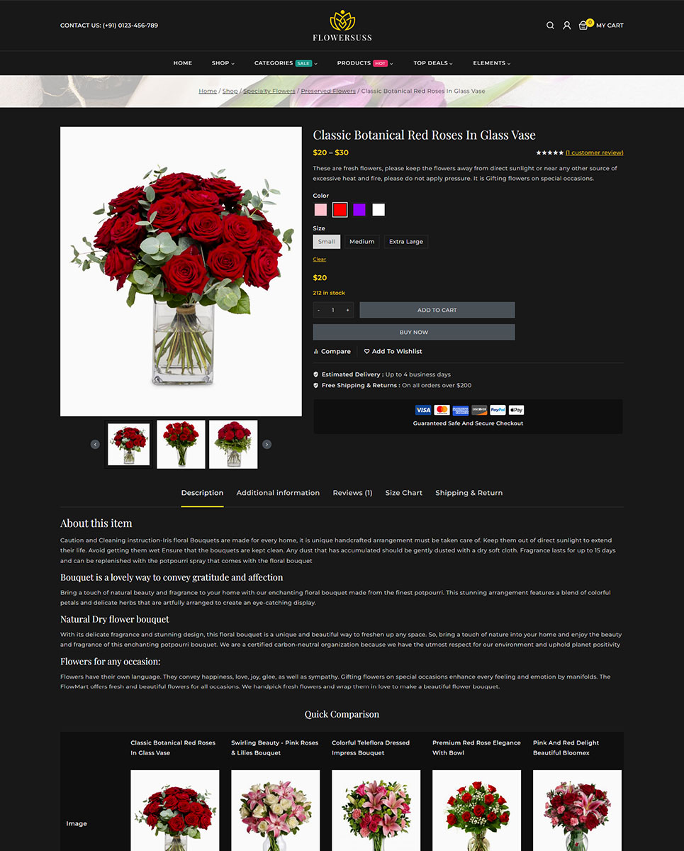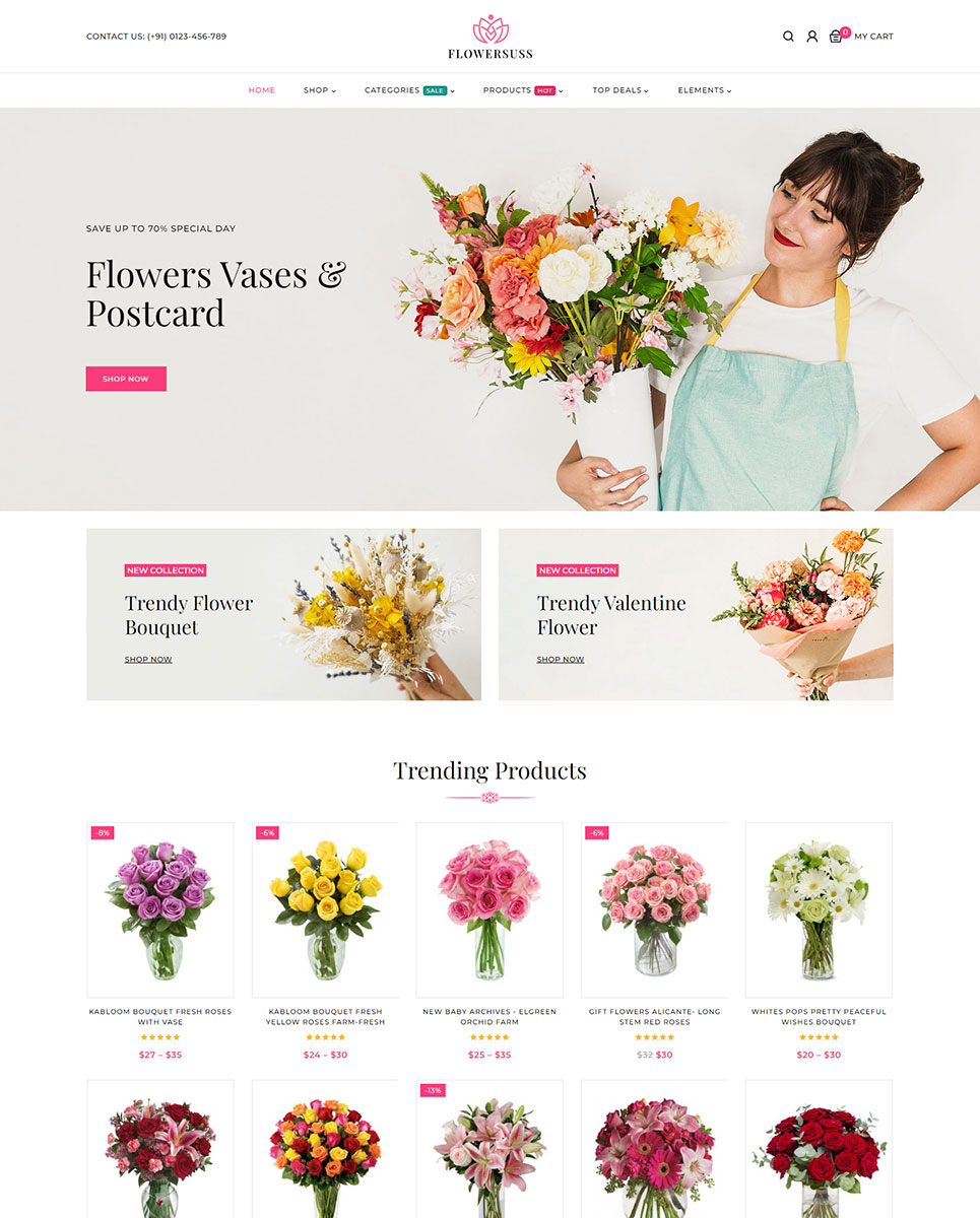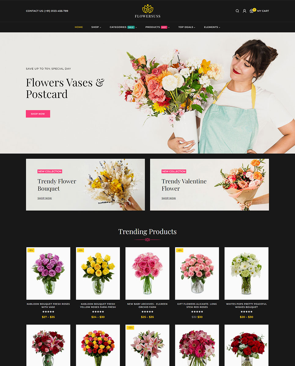 Flowersuss is a stunning Elementor WooCommerce Responsive Theme designed specifically for florists, exotic flowers, bouquets and flower stores. It offers a beautifully crafted, feature-rich platform to showcase your floral arrangements and products, providing an exceptional shopping experience for your customers. With its modern design and advanced functionalities, Flowersuss ensures your online flower shop stands out and thrives in the competitive market.