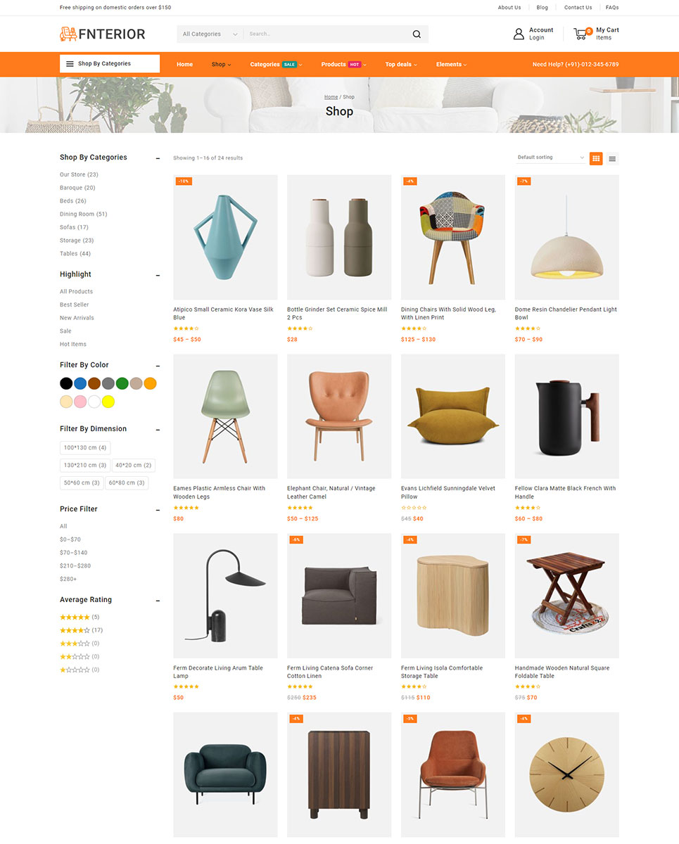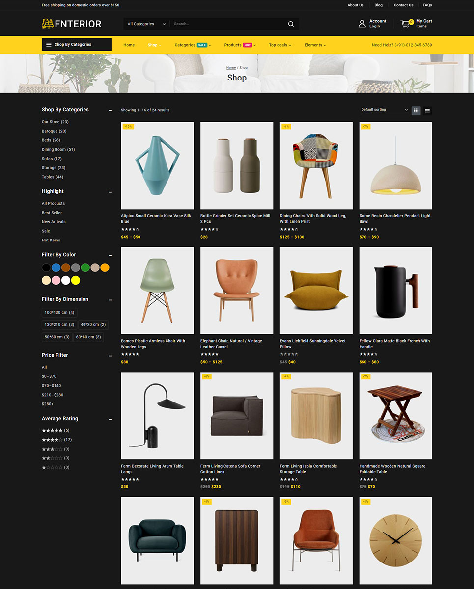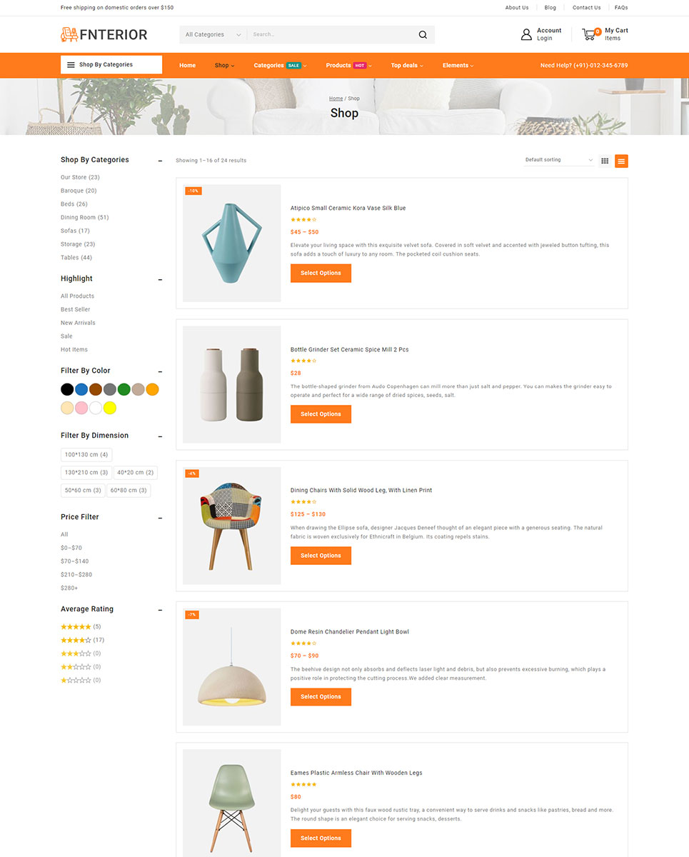 Introducing Fnterior – a sleek and sophisticated WordPress theme tailored specifically for furniture and decor stores, Home Decor Items, Floring Carpets, Home Interior, Chair, Table, Lamps, Fancy Lights, Handicraft items and other accessories. This theme is seamlessly integrated the powerful plugins Elementor builder, Revolution Slider and WooCommerce. With its contemporary design and user-friendly interface, Fnterior provides a dynamic platform for showcasing exquisite furniture pieces and decor items.