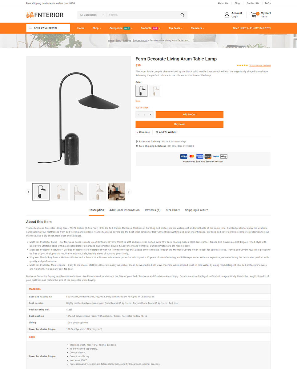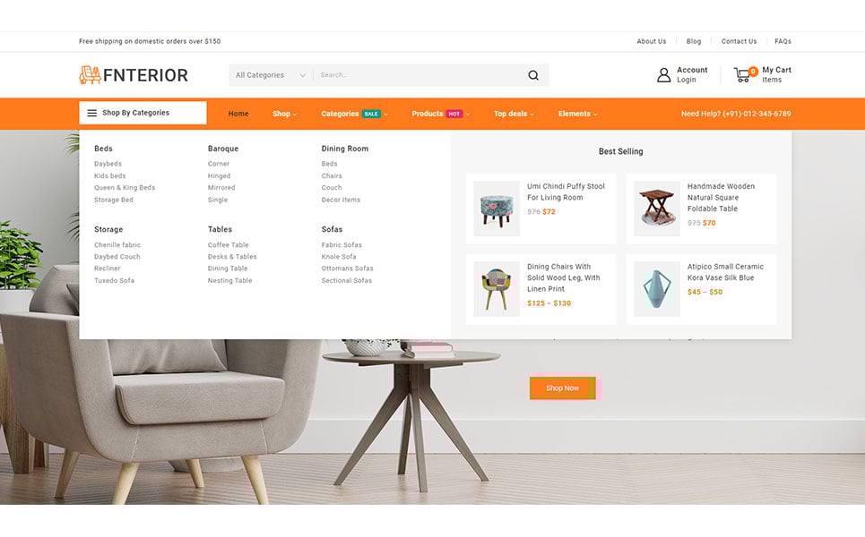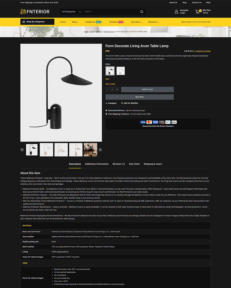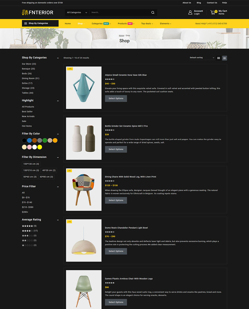 Introducing Fnterior – a sleek and sophisticated WordPress theme tailored specifically for furniture and decor stores, Home Decor Items, Floring Carpets, Home Interior, Chair, Table, Lamps, Fancy Lights, Handicraft items and other accessories. This theme is seamlessly integrated the powerful plugins Elementor builder, Revolution Slider and WooCommerce. With its contemporary design and user-friendly interface, Fnterior provides a dynamic platform for showcasing exquisite furniture pieces and decor items.