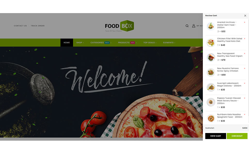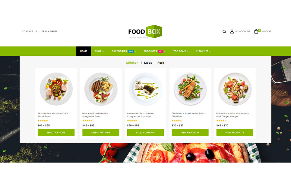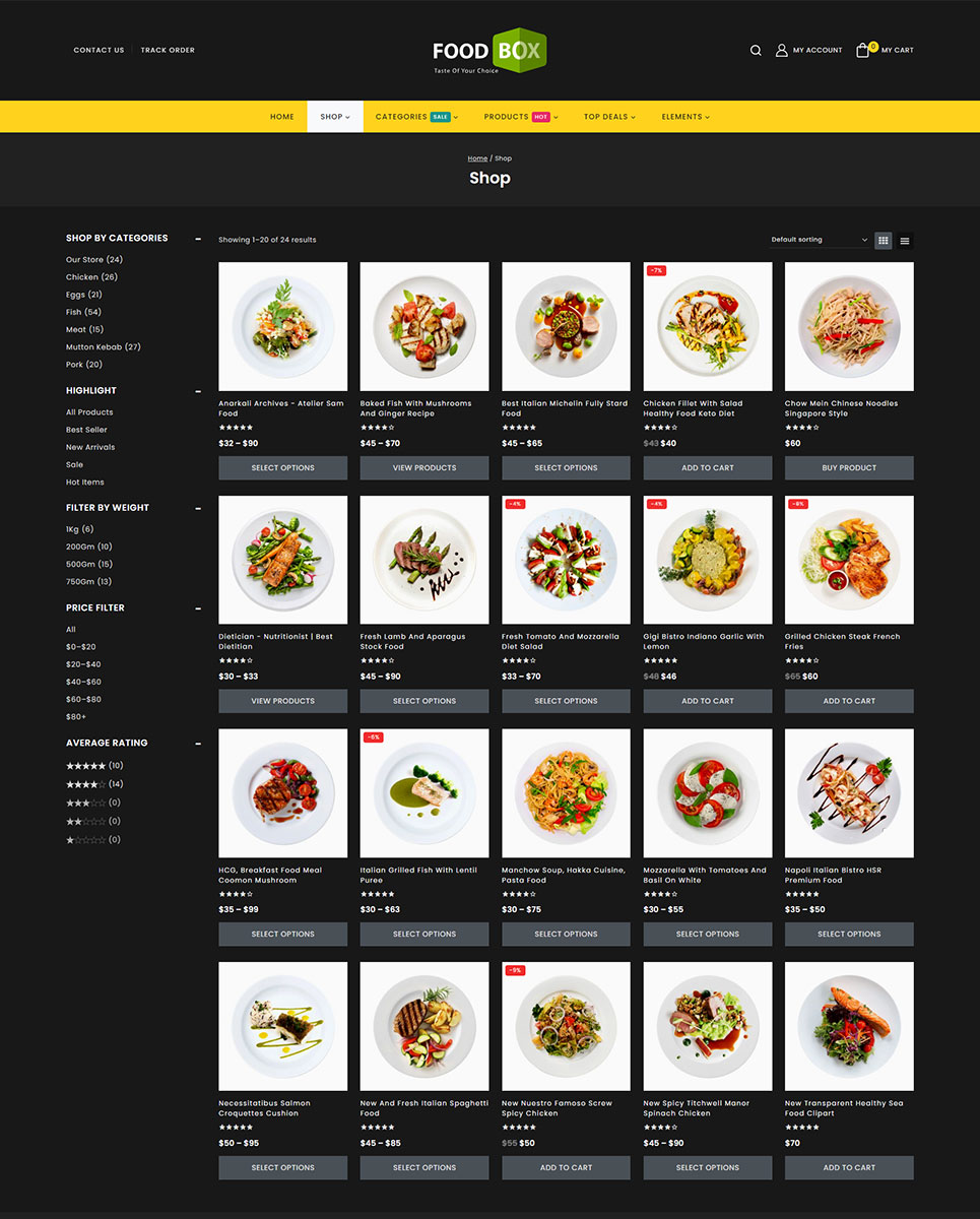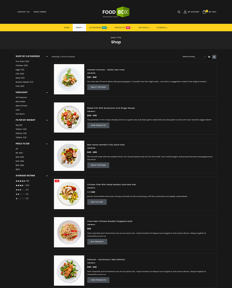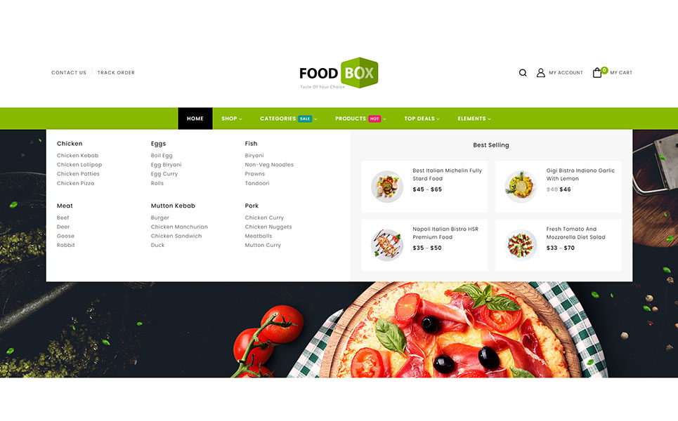 Food Box stands as a dynamic and feature-rich WordPress theme tailored specifically for restaurants and cafes. It's also suitable for products like Food, Fruits, Organic, Wine, Pizza, Coffee, Bakery, Vegetables, Wine etc.. It is also multipurpose which can be used for any types of online store. This theme seamlessly integrates with Elementor and WooCommerce, offering a versatile platform to showcase your culinary creations.