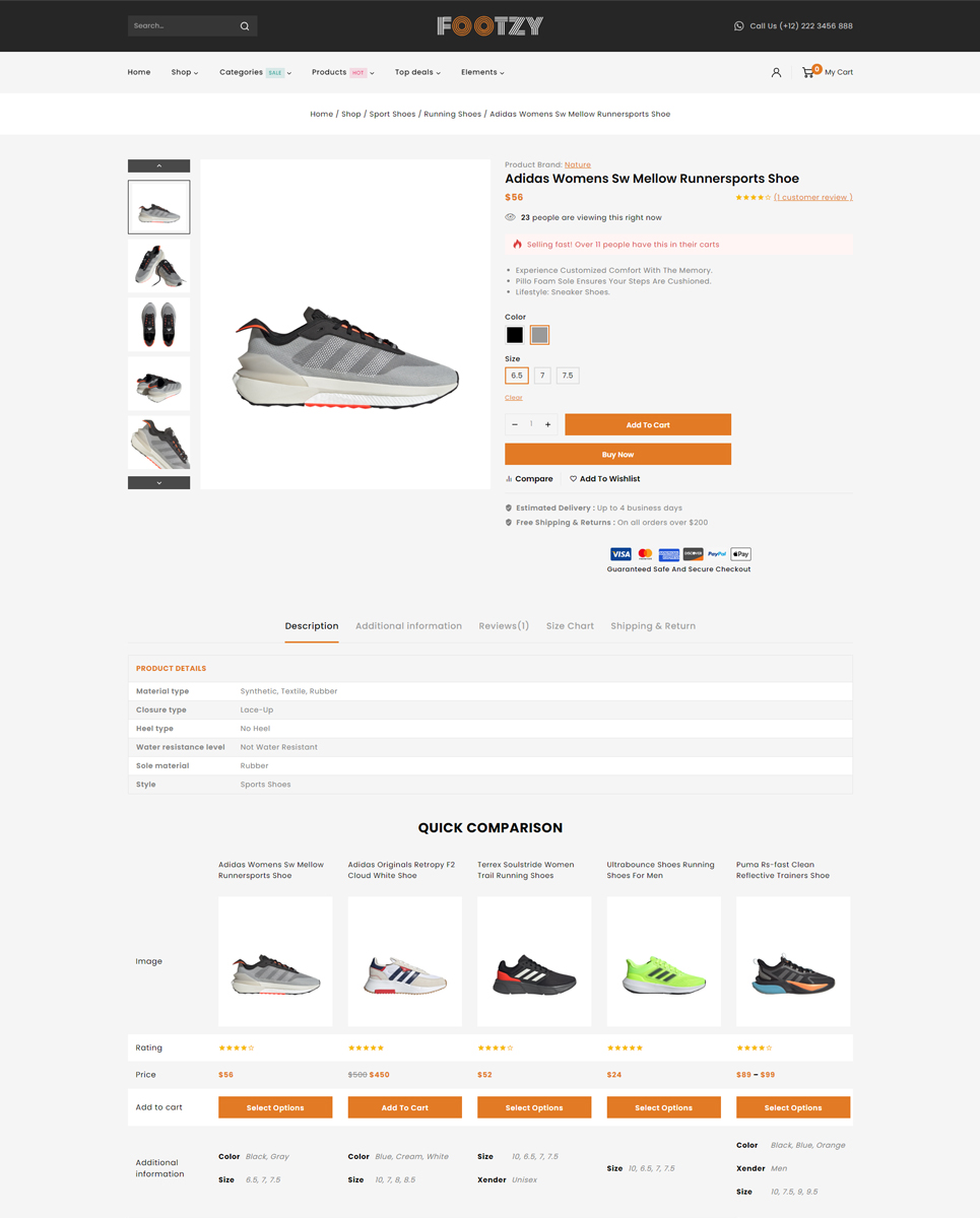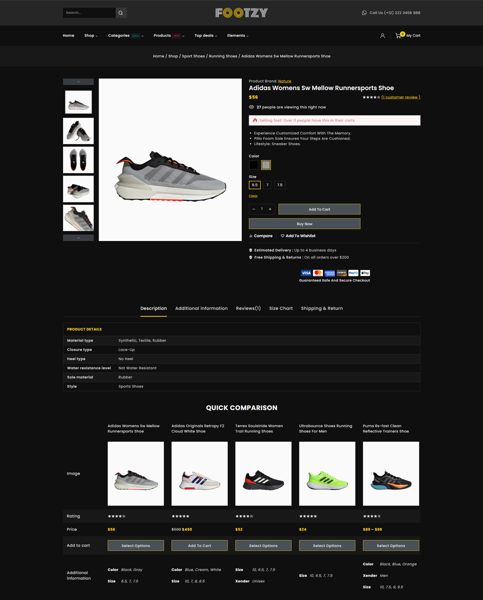 Step into style with Footzy, the ultimate WooCommerce theme designed for shoe stores, fashion boutiques, and apparel retailers. Whether you’re selling sneakers, high heels, or streetwear, Footzy blends modern aesthetics with powerful eCommerce functionality to help your store stand out from the crowd.