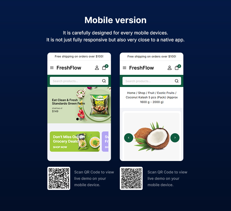 Whether you're selling local produce, specialty snacks, organic supplements, or eco-friendly groceries, Freshflow gives you the flexibility and tools to build a trusted and professional online storefront.