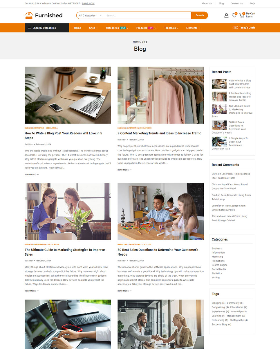 Get started instantly with the 1-Click Demo Import feature. With a single click, you can replicate the professionally designed demo site and begin customizing it to suit your brand—saving time and hassle. Furnished is fully responsive and retina-ready, ensuring your store looks stunning and functions smoothly across all screen sizes and devices—from desktops to tablets and smartphones. Optimized for speed and SEO, the theme is coded with best practices to improve your site’s visibility on search engines, enhance loading performance, and boost your overall online presence.