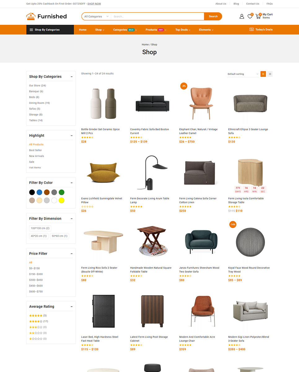 Furnished - Furniture Store Elementor WooCommerce Responsive Theme WooCommerce Theme