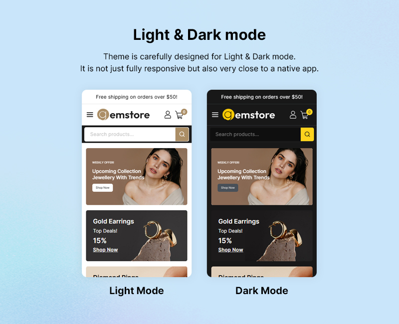 Gemstore features a sophisticated and minimalist layout that puts your products in the spotlight. The theme’s responsive design ensures your store looks flawless on all devices, providing a premium shopping experience for every visitor.