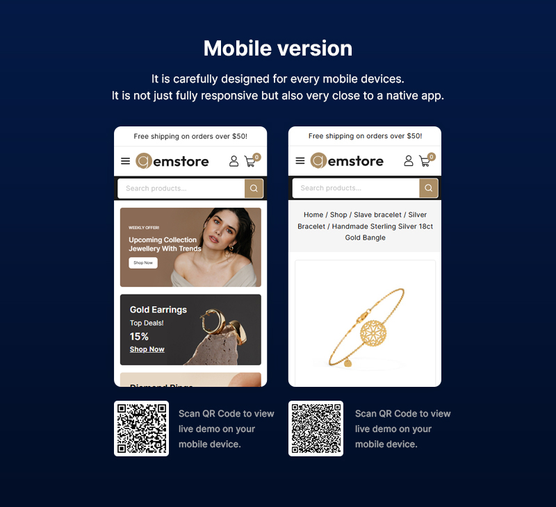 Showcase the brilliance of your products with Gemstore, a WooCommerce theme designed for luxury and elegance. Ideal for jewelry stores, watch retailers, and gem boutiques, Gemstore blends stunning design with powerful functionality to help your online business shine.