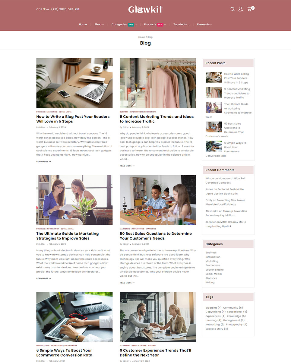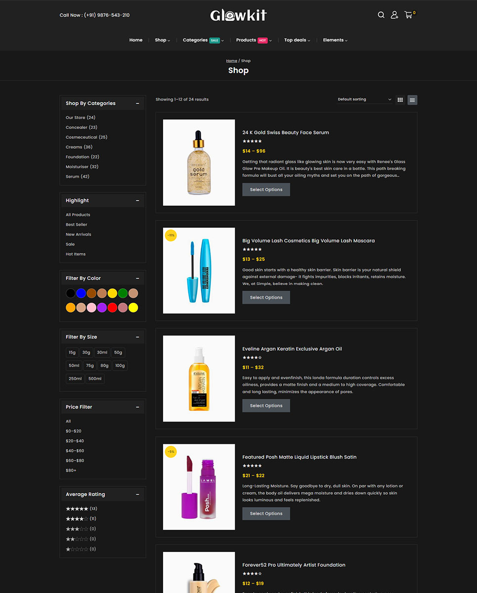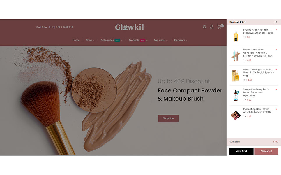 Glowkit is a sophisticated and feature-rich WordPress eCommerce theme based on elementor builder and woocommerce integration designed specifically for beauty and cosmetic stores. Glowkit boasts a visually appealing design crafted specifically for beauty, cosmetic, salon, spa, skincare, makeup, haircare items, fashion or any other beauty-related merchandise. With elegant typography, high-quality images, and modern layout elements, it creates a captivating atmosphere that draws visitors in.