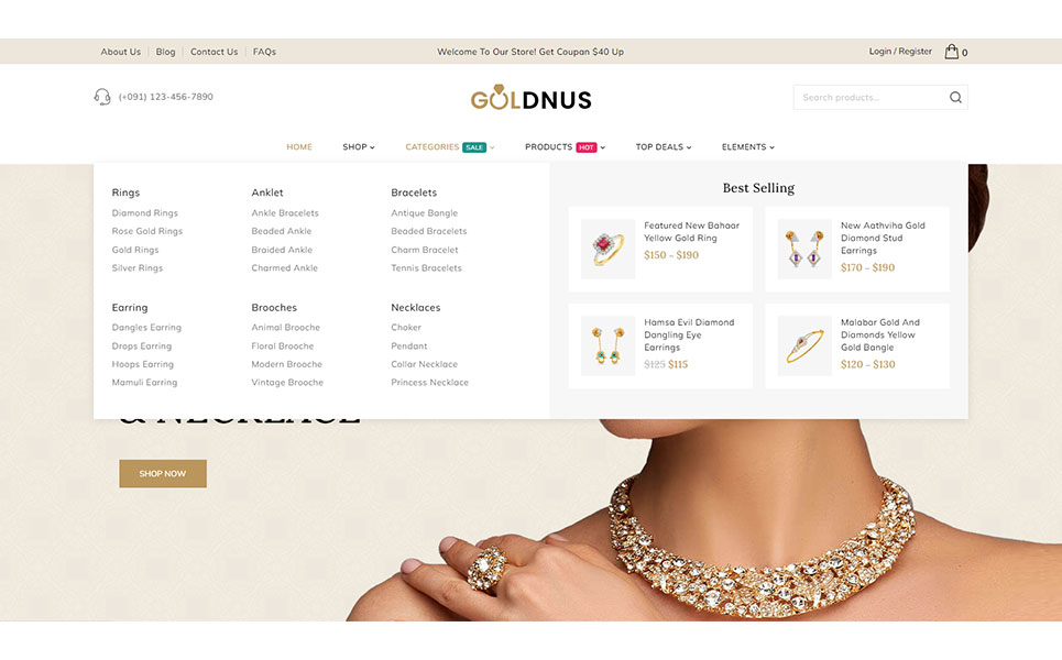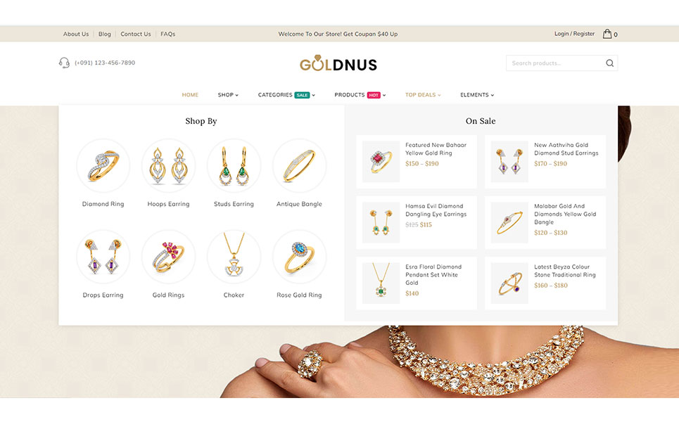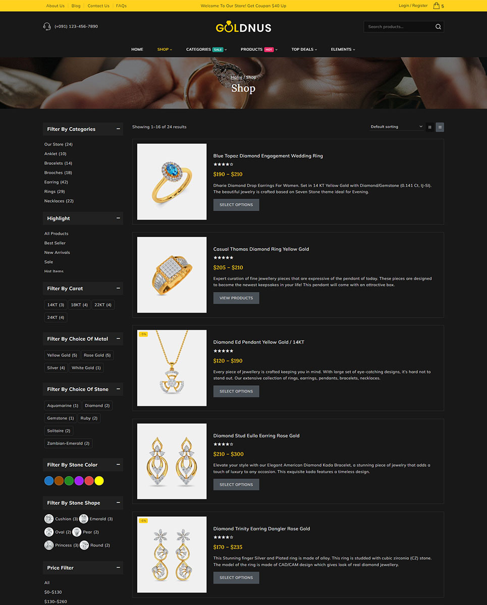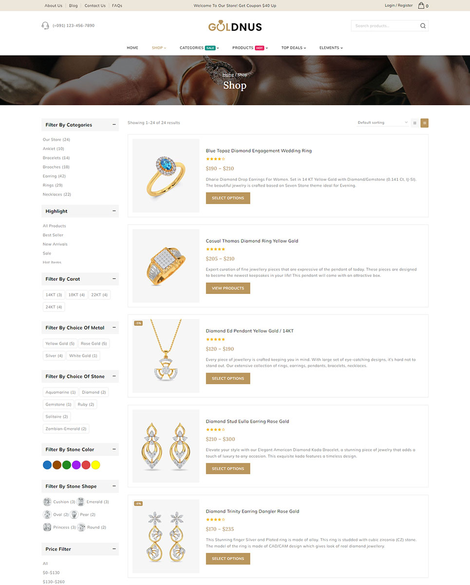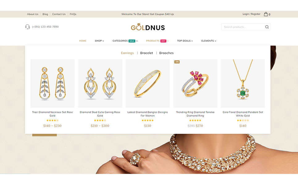Goldnus is a sophisticated and elegant Jewelry Store Elementor WooCommerce Responsive Theme designed to elevate your online jewelry business to new heights. Packed with a plethora of features and functionalities, it offers a seamless user experience for customer. This responsive theme is high quality fully customizable multipurpose wordpress theme design for diversified topics like Jewelry, Diamond, Gold, Accessories, Cosmetic, Beauty, Apparel, Fashion and many more.