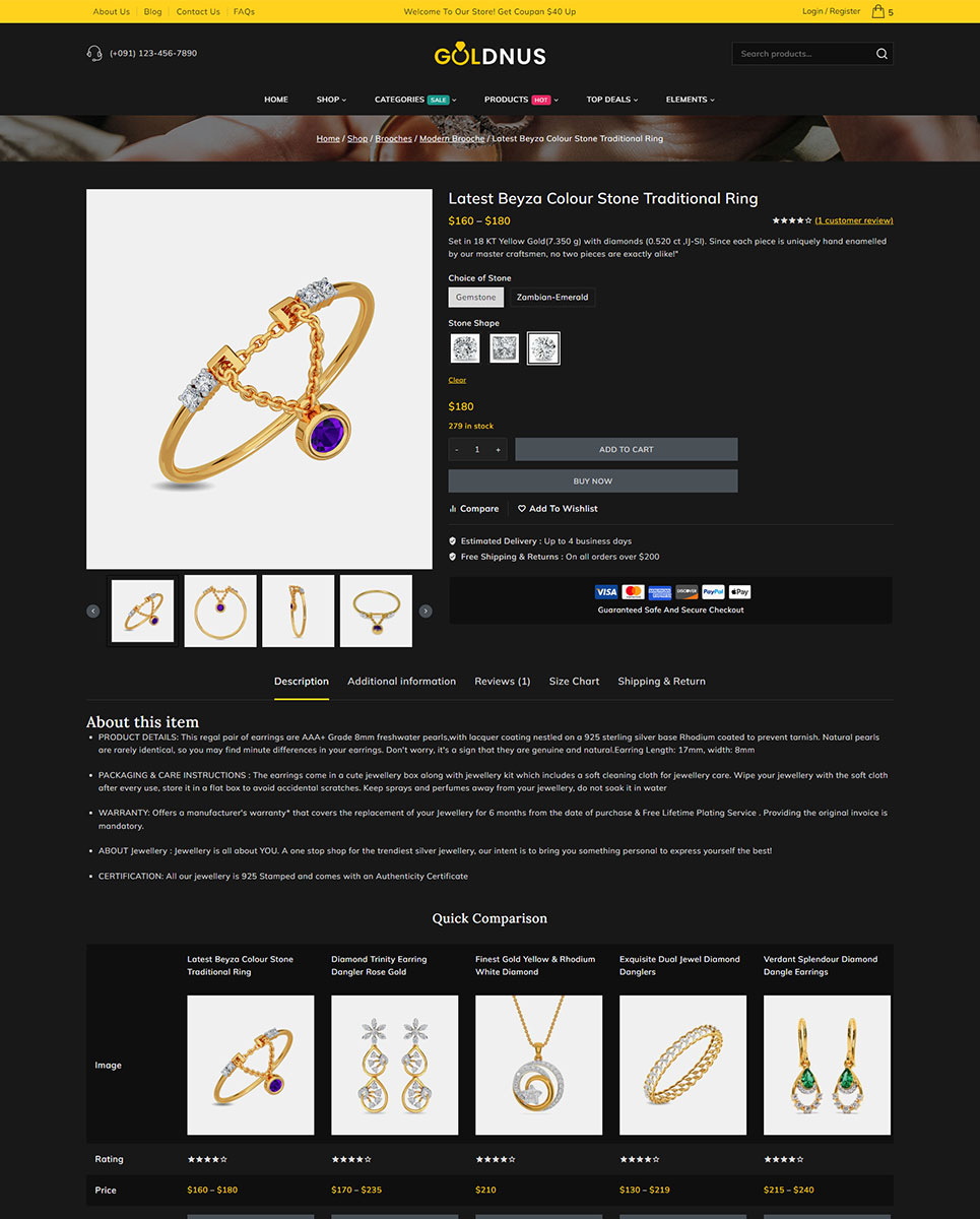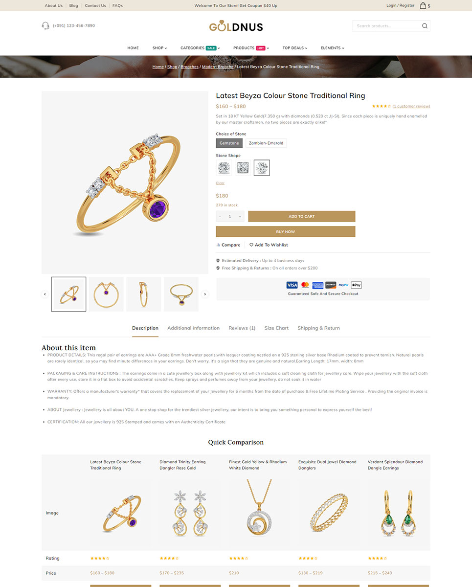 The Ajax feature enhances user experience by enabling seamless and instantaneous product browsing, without the need for page reloads. This results in faster navigation and smoother transitions, ultimately leading to higher customer satisfaction and increased sales.Goldnus offers extensive product variation options, including the ability to customize jewelry items with different stones and colors. This allows customers to personalize their purchases according to their preferences, thereby enhancing engagement and conversion rates.