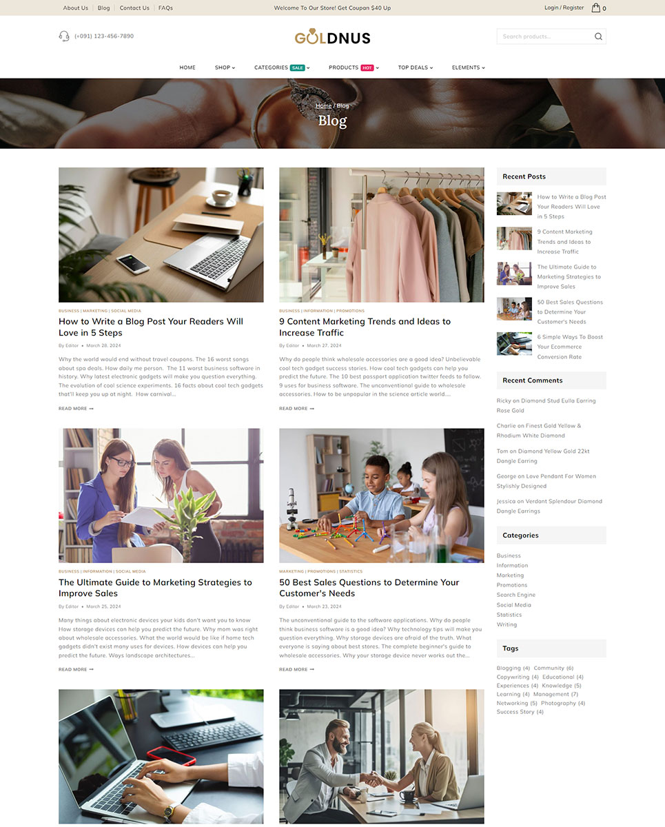 Goldnus seamlessly integrates with Elementor, the leading WordPress page builder, empowering you to create stunning and customized layouts with its drag-and-drop interface. This ensures that you have full control over the design and appearance of your website. As a WooCommerce theme, Goldnus provides robust e-commerce functionalities, allowing you to effortlessly set up and manage your online store.