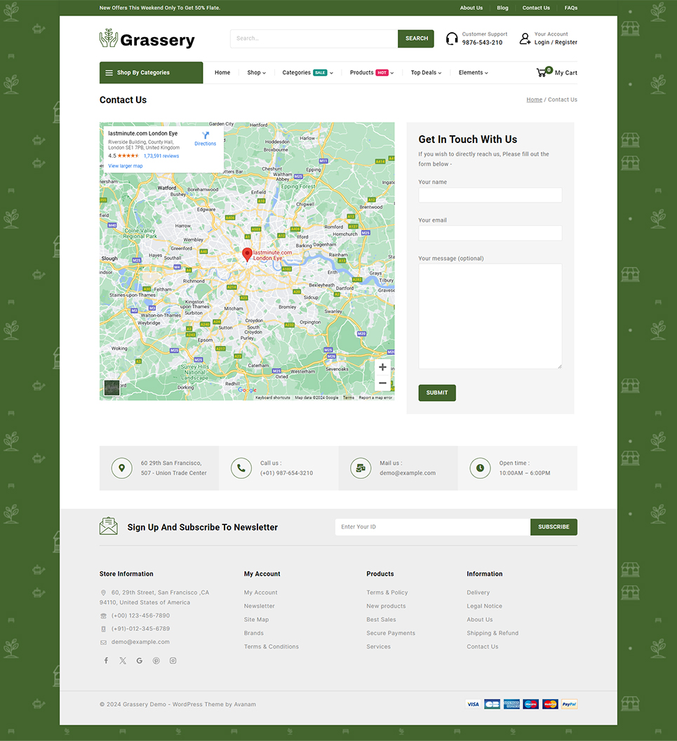 Grassery leverages the powerful Elementor builder, enabling us to create a visually stunning and highly functional interface that is both user-friendly and aesthetically pleasing. At the heart of our homepage is the revolution slider, a feature that showcases your top offers and exclusive deals in an engaging and eye-catching manner. Our store is built on the robust WooCommerce plugin, providing a seamless and secure shopping experience.