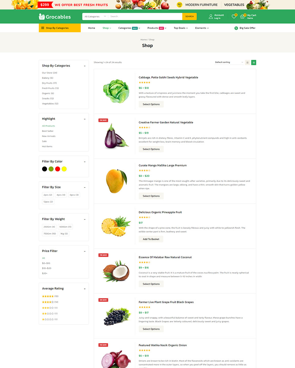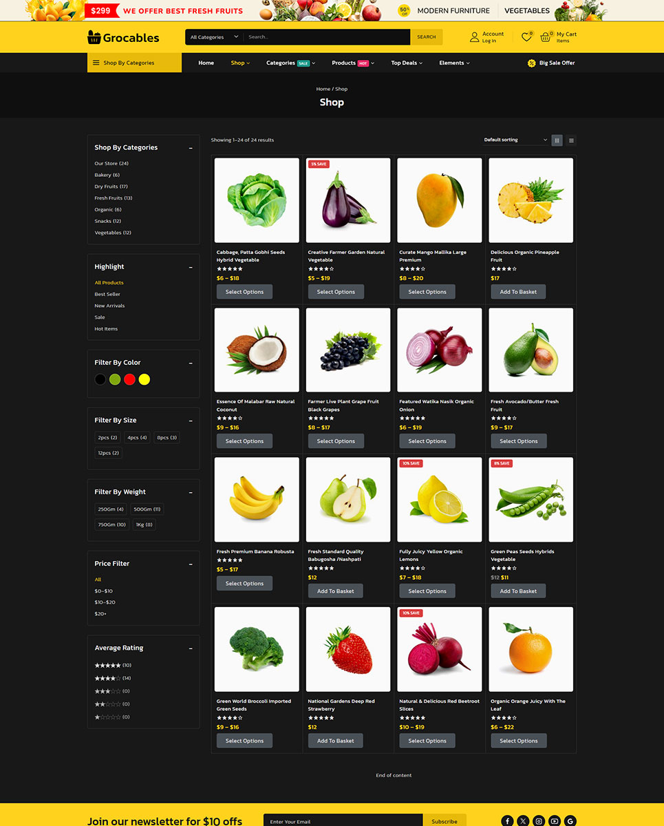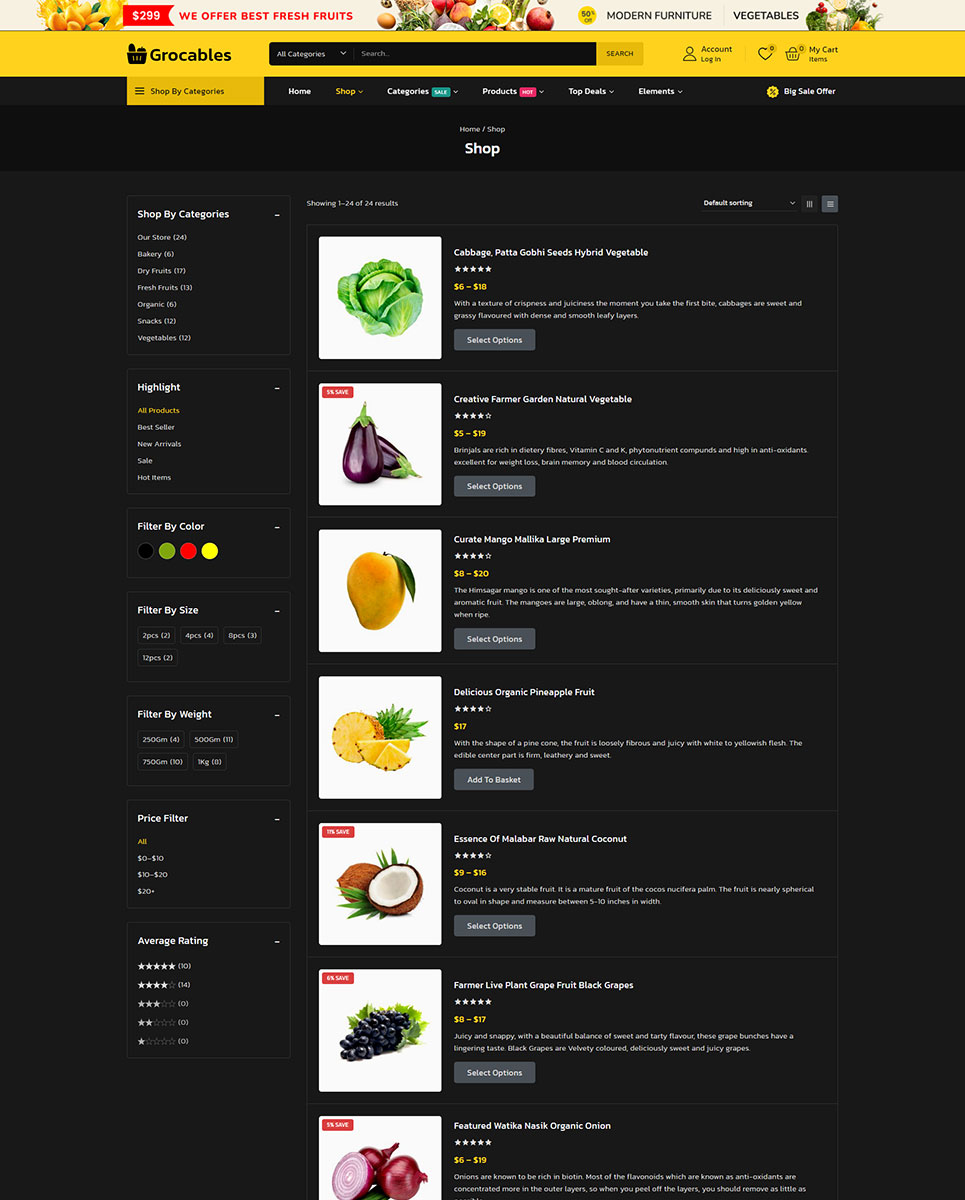 The Grocables Super Market Elementor WooCommerce Responsive Theme is a premium WordPress theme designed for online Grocery, Vegetable, Fruits, Bakery, Dairy Products and Supermarkets website. With its integration of Elementor and WooCommerce, Grocables offers an intuitive and powerful platform for creating a highly functional and visually appealing e-commerce website tailored to the grocery industry.