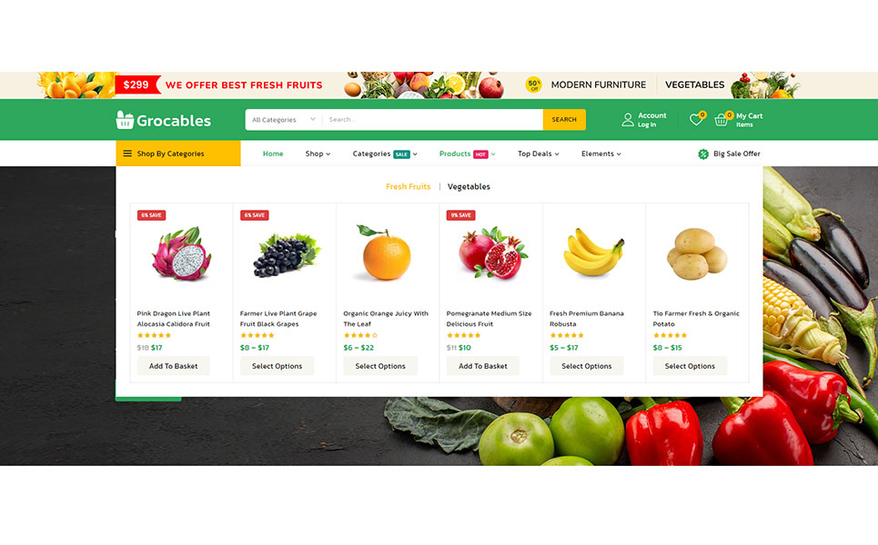 Grocables - Vegetable, Fruits & Grocery Store Elementor WooCommerce Responsive Theme WooCommerce Theme
