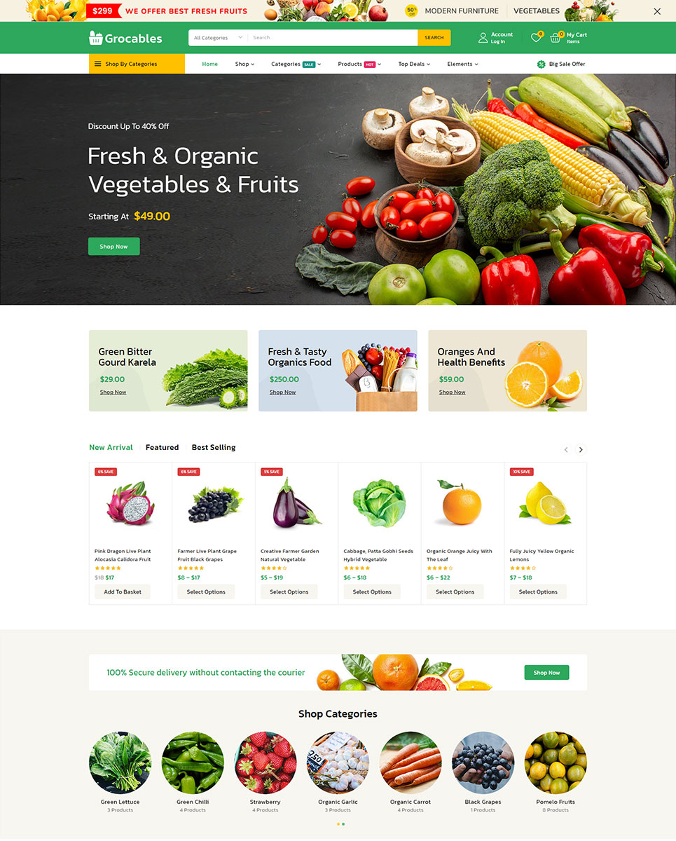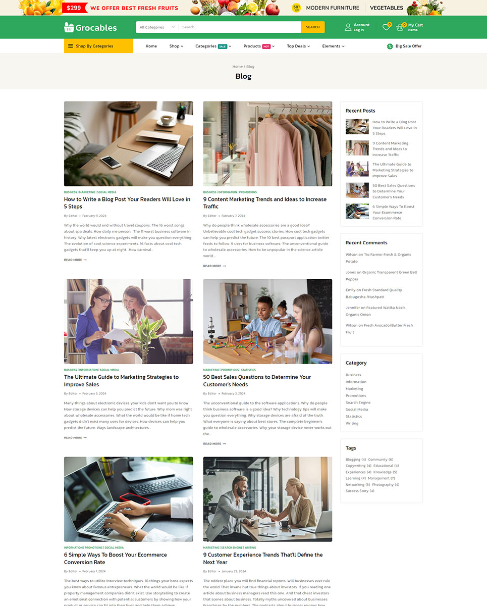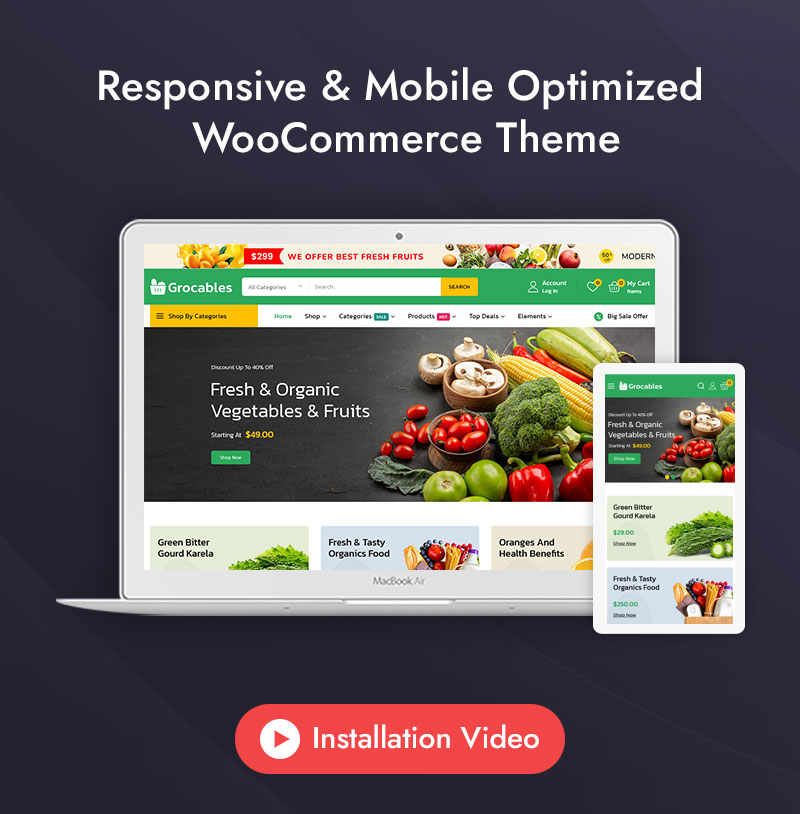 The theme is fully responsive, ensuring that your online store looks great and functions smoothly on all devices, including desktops, tablets, and smartphones. This mobile-friendly design enhances the shopping experience for users on the go. Grocables is optimized for SEO, helping your store rank higher in search engine results. With the one-click demo import feature, you can quickly set up your site to look like the demo, complete with all the layouts, widgets, and content.
