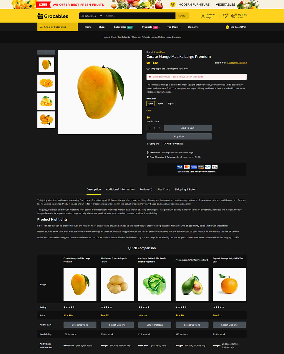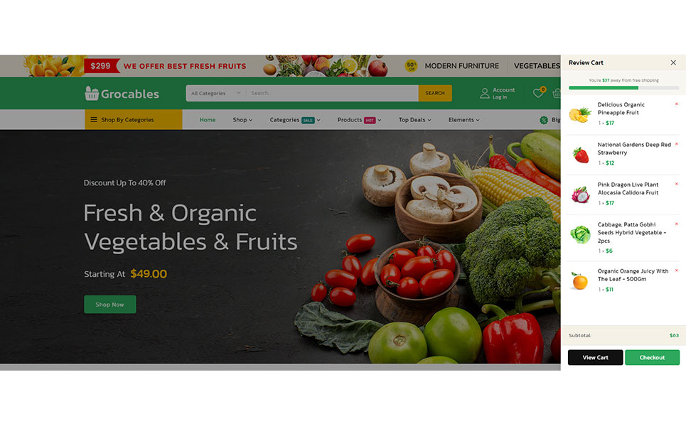 Overall, the Grocables - Grocery Super Market Elementor WooCommerce Responsive Theme is a comprehensive solution for creating a robust and user-friendly online grocery store.