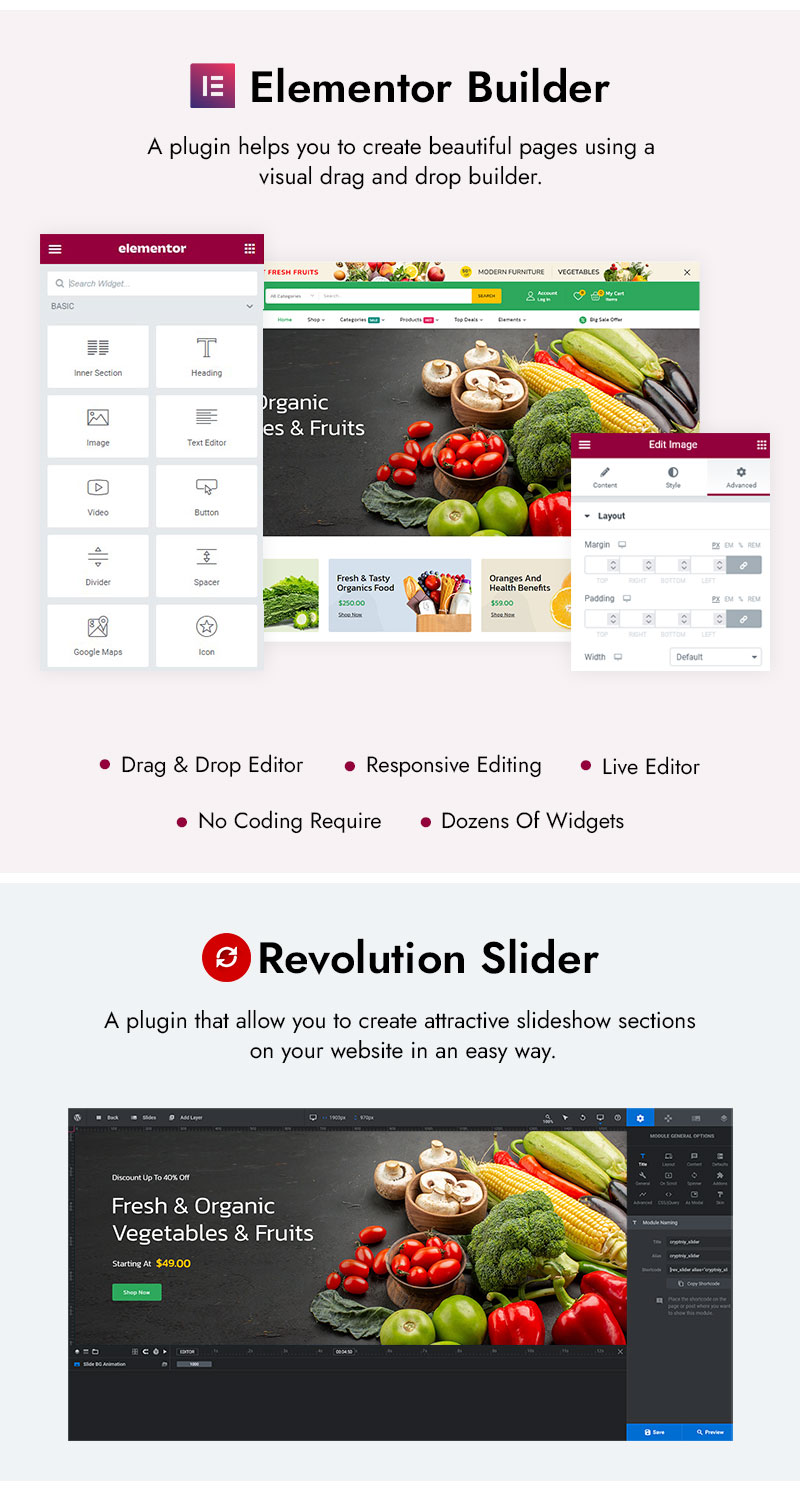 Grocables includes a powerful Theme Customizer that allows you to make real-time changes to your website’s appearance. With the customizer, you can adjust colors, typography, layout settings, and more, and see the results instantly. The Header & Footer Builder provides a drag-and-drop interface to create and customize headers and footers. You can add elements like logos, navigation menus, social media icons, contact information, and more.