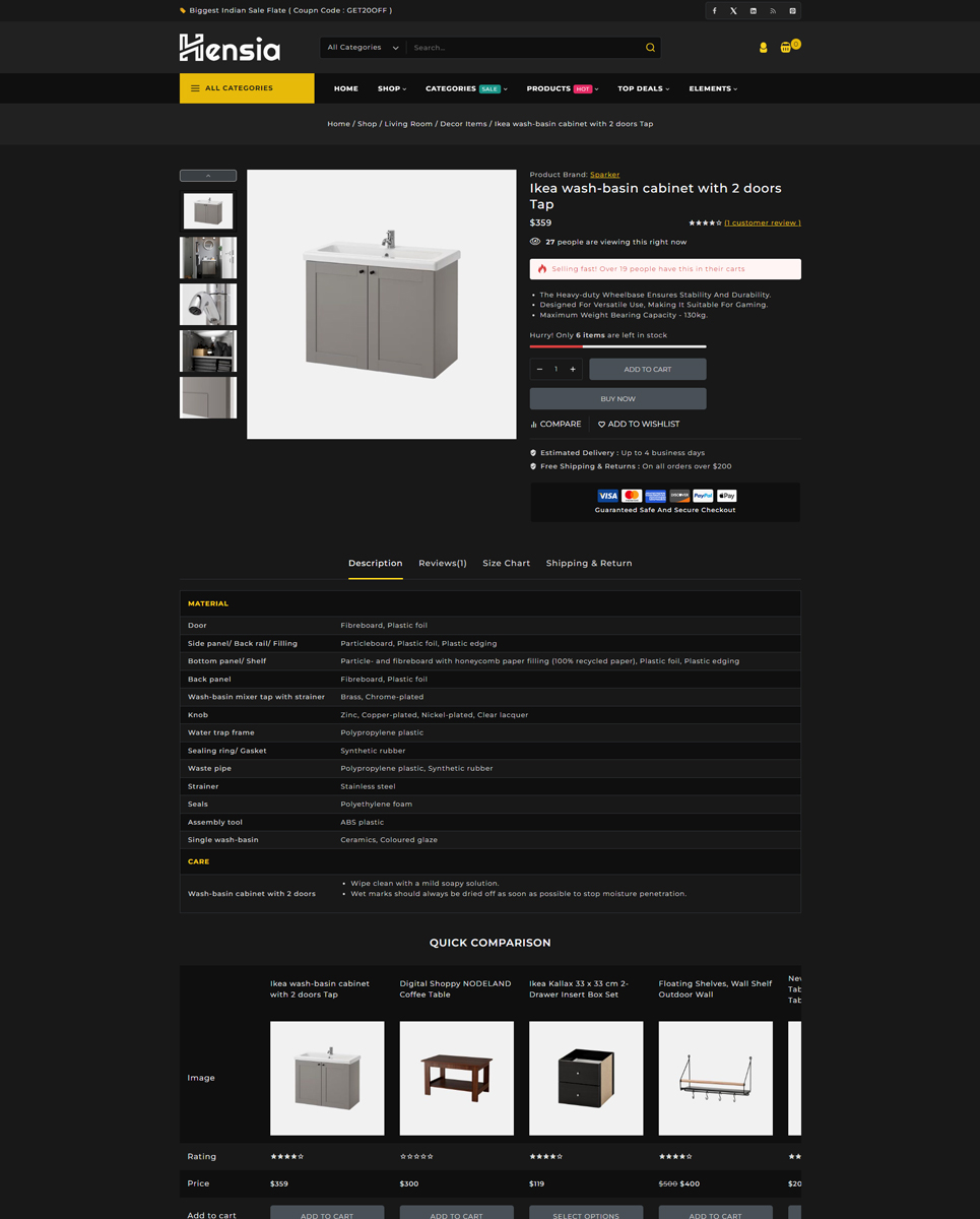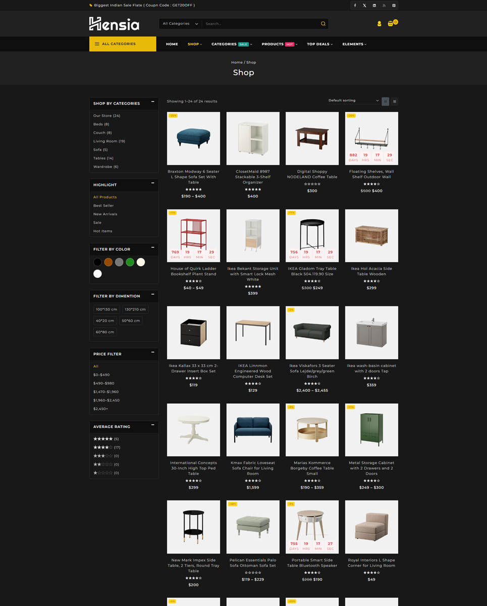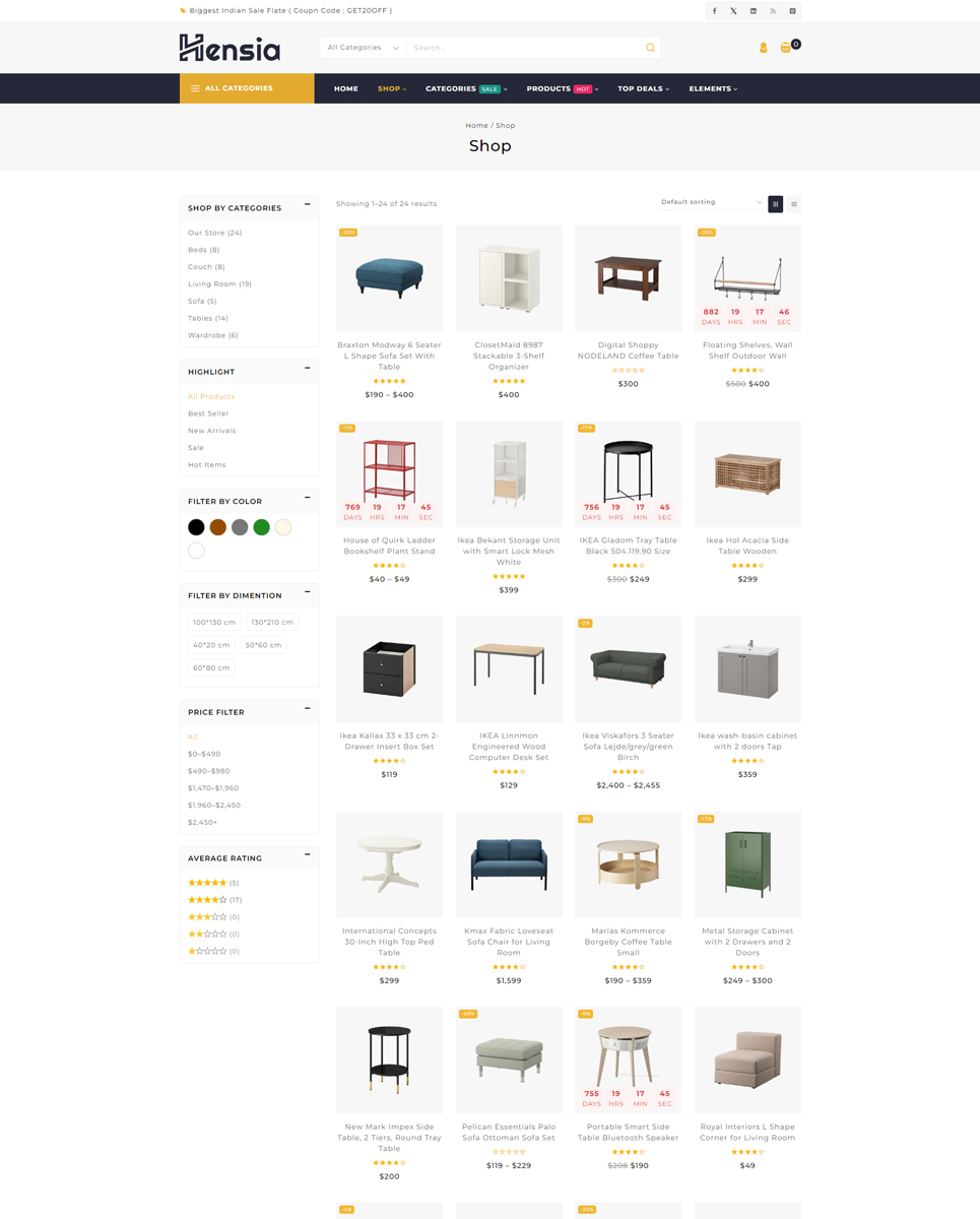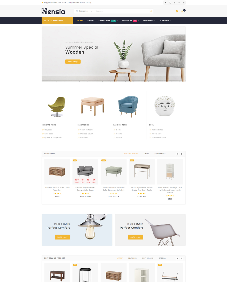 Hensia is a beautifully crafted WooCommerce theme designed specifically for furniture stores, home decor boutiques, and interior design shops. It combines modern aesthetics with powerful eCommerce functionality, making it the perfect solution for businesses looking to showcase their products in a stylish, user-friendly way.
