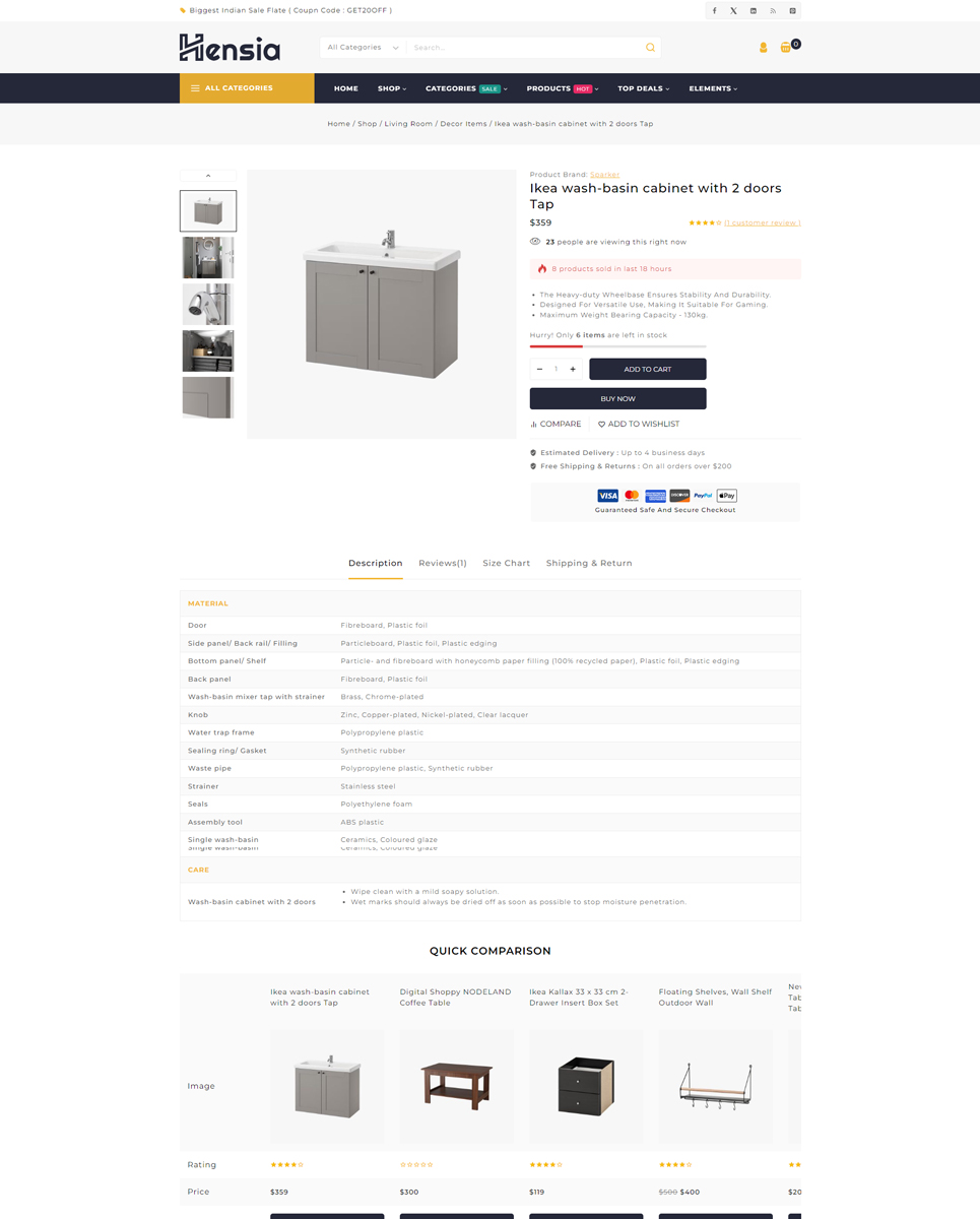 Built with performance and usability in mind, Hensia offers a sleek, minimalist design that puts your products front and center. Whether you sell contemporary furniture, elegant decor pieces, or custom interior designs, Hensia helps your store exude professionalism and charm.