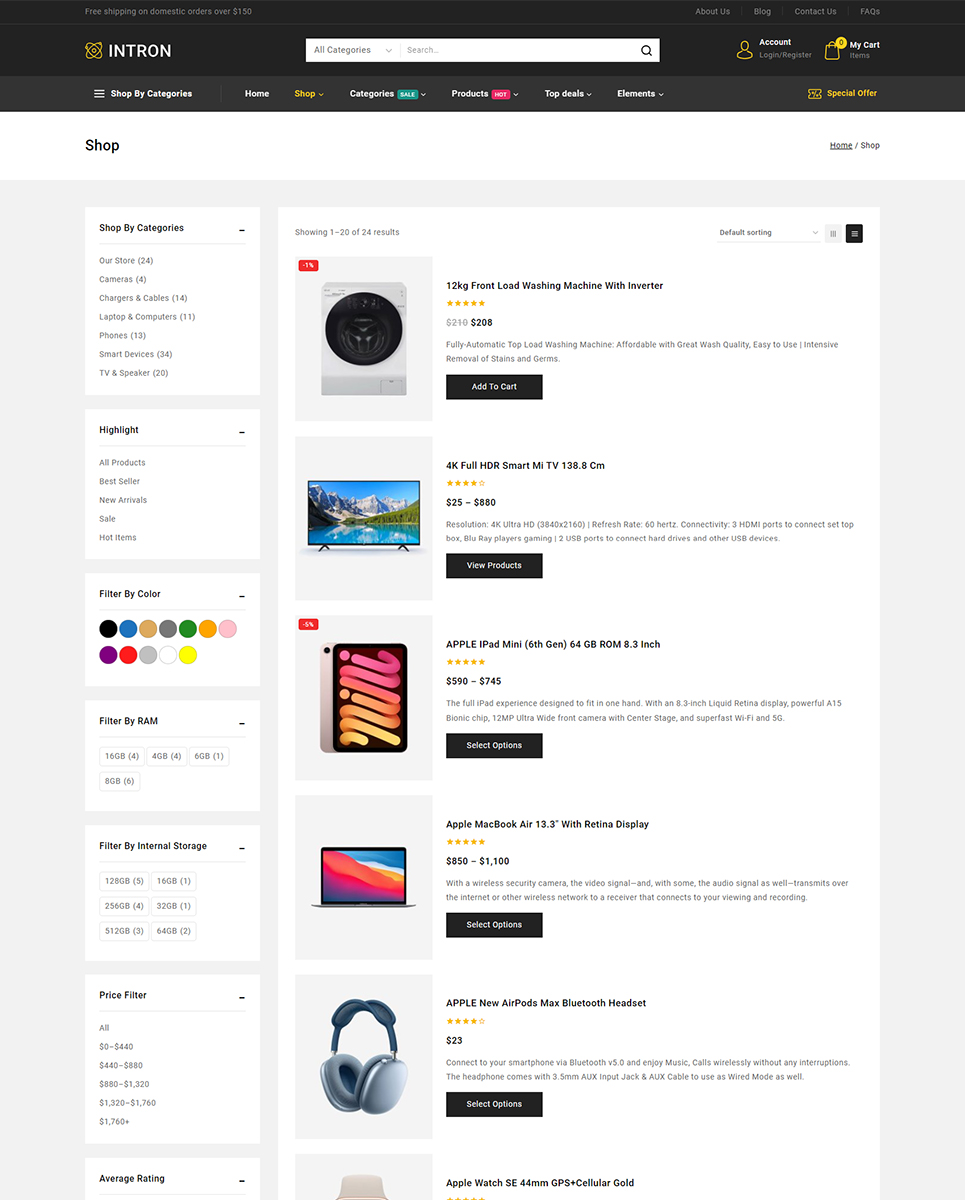 Intron - Mega Electronics Store Elementor WooCommerce Responsive Theme WooCommerce Theme