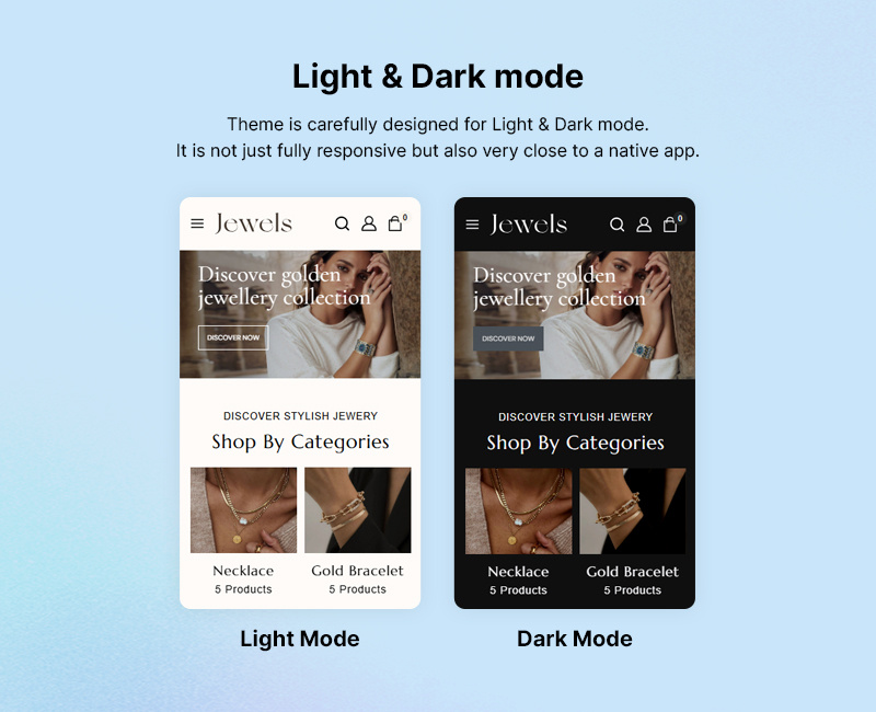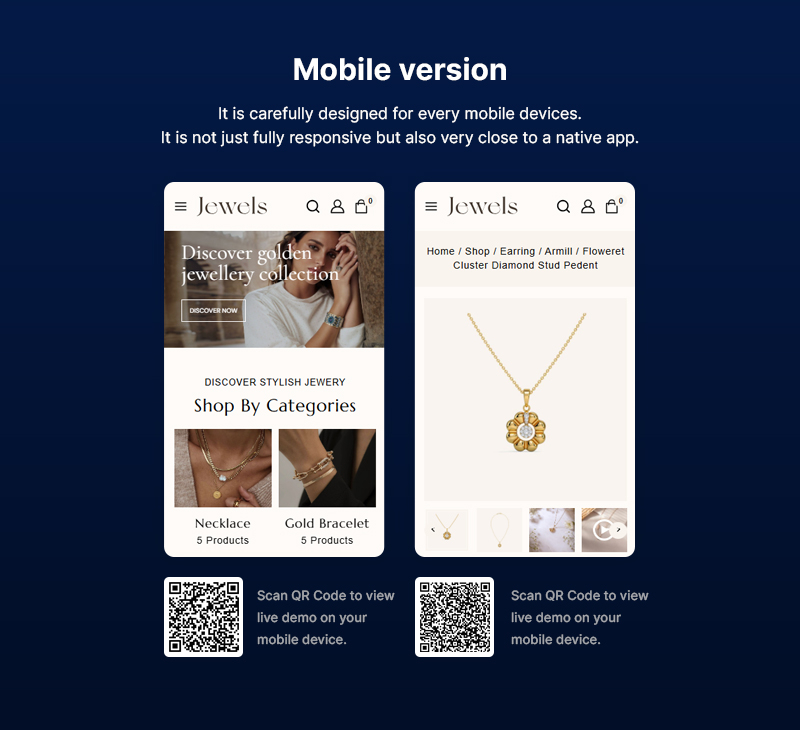 The Jewels theme offers a fully responsive layout that adapts flawlessly to any device, ensuring a seamless shopping experience for your customers. Its intuitive navigation and fast loading speed guarantee that visitors stay engaged and enjoy browsing through your exquisite collections.