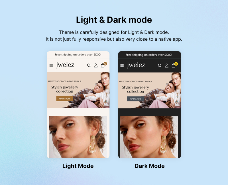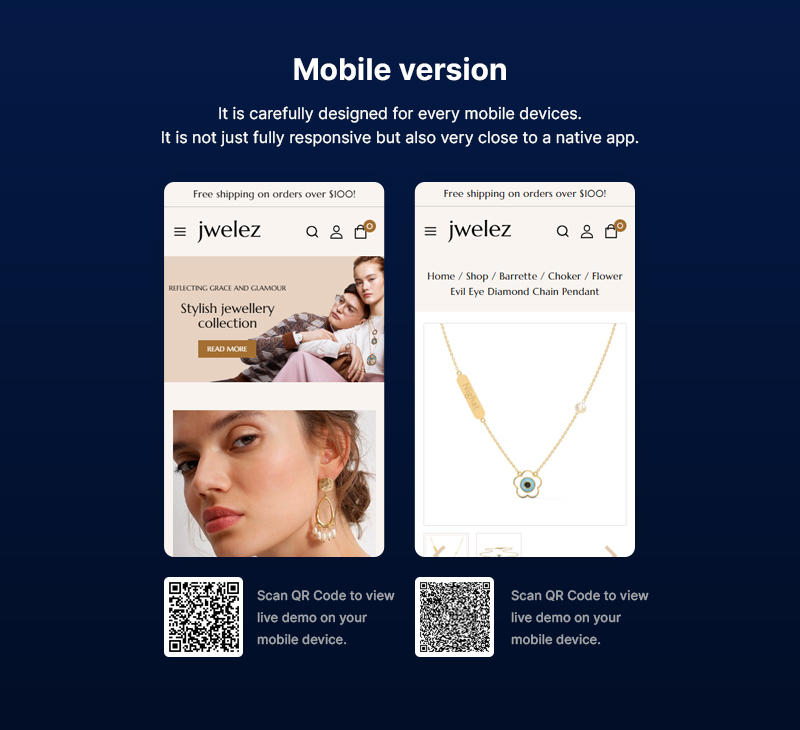Jwelez features a luxurious and visually appealing layout, ensuring a premium shopping experience. Its fully responsive and retina-ready design guarantees flawless performance across all devices, making your store look stunning on desktops, tablets, and smartphones. The theme’s sleek typography and refined color schemes enhance the elegance of your products.