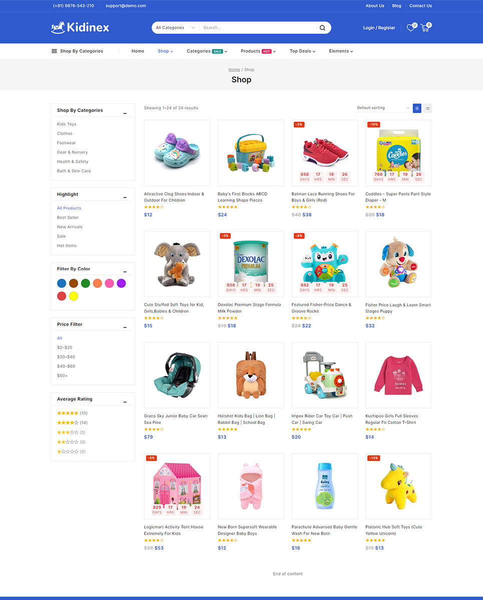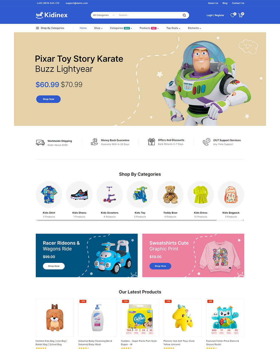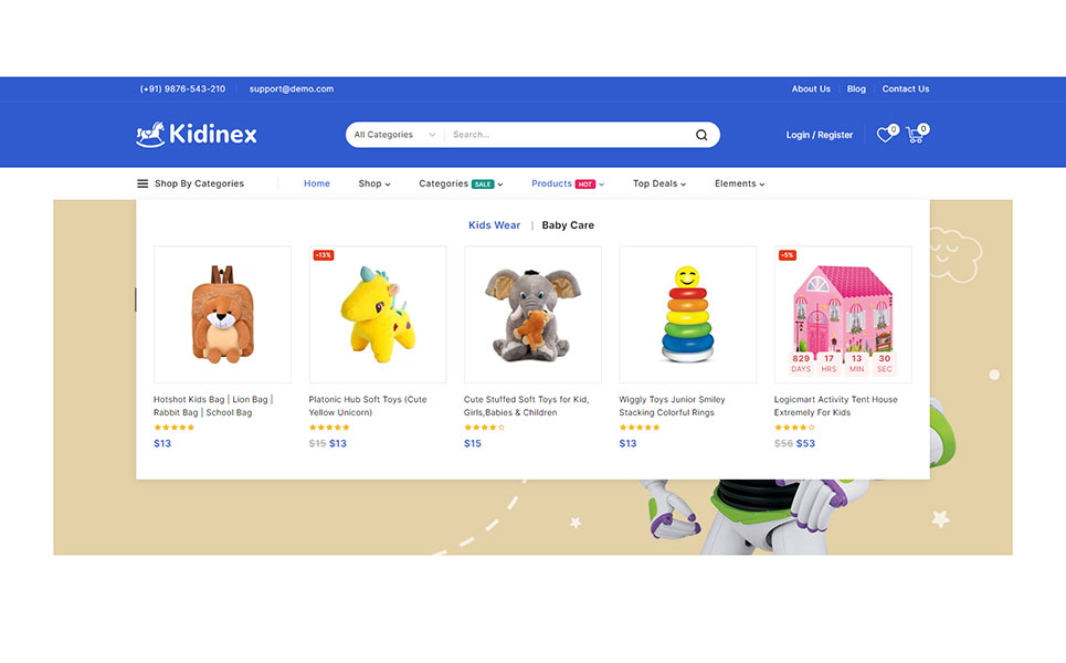 Kidinex - Baby Care and Toys Store Elementor WooCommerce Responsive Theme WooCommerce Theme