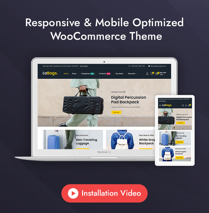 Ensure your store looks and functions flawlessly on any device. Labags is fully responsive, meaning it adapts to different screen sizes and resolutions, providing an optimal viewing experience on smartphones and tablets. Get your online store up and running in no time with the 1-click installation process. This feature simplifies the setup process, allowing you to import demo content and configure your site quickly and easily. Built with SEO best practices in mind to help your store rank higher in search engine results. Optimized for speed to ensure quick loading times, providing a better user experience and improved conversion rates with labags theme layout.