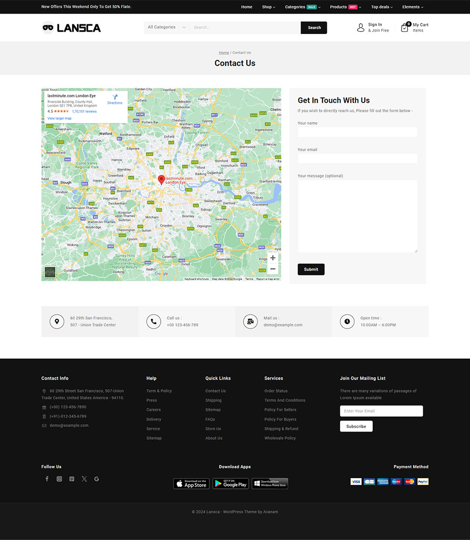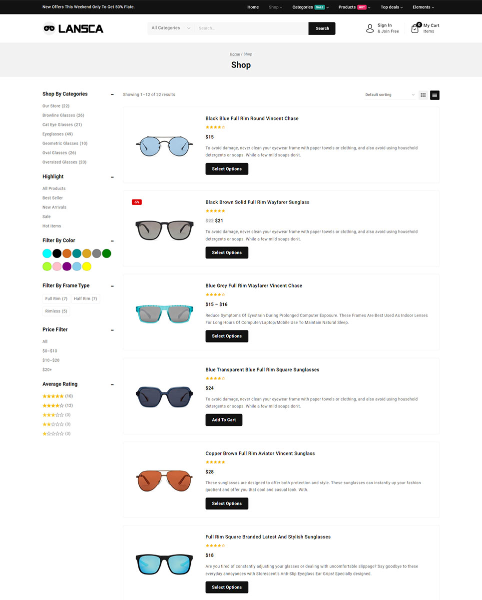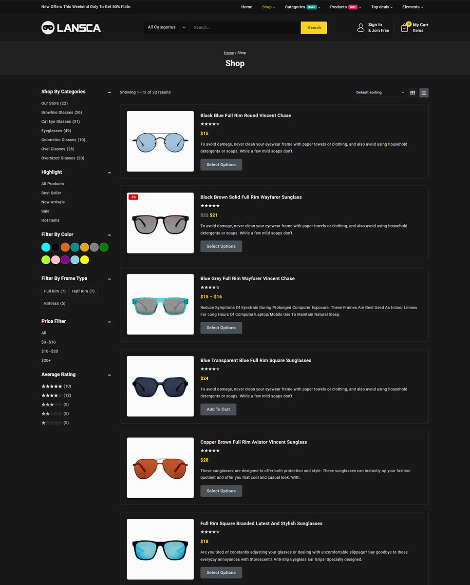 Lansca - Eye Glasses Store Elementor WooCommerce Responsive Theme WooCommerce Theme