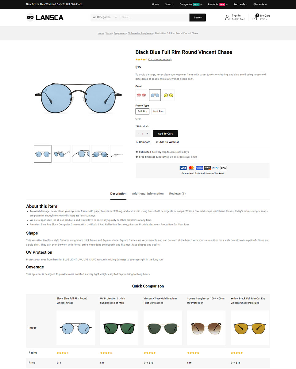 "Lansca" is crafted to meet the demands of modern eyewear businesses, combining aesthetics with advanced functionalities. Elevate your online eyewear business with Lansca, creating an immersive and user-friendly shopping experience for your customers.