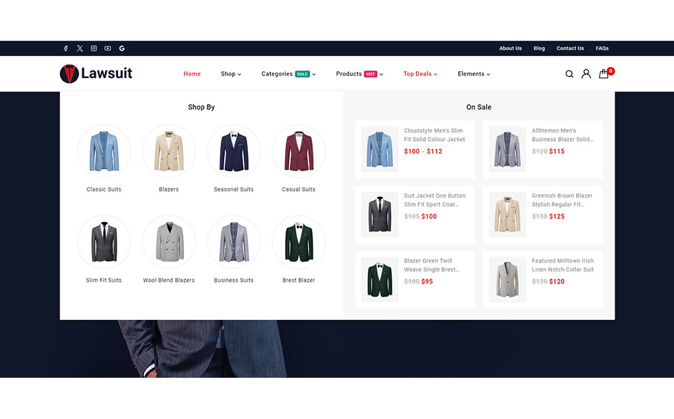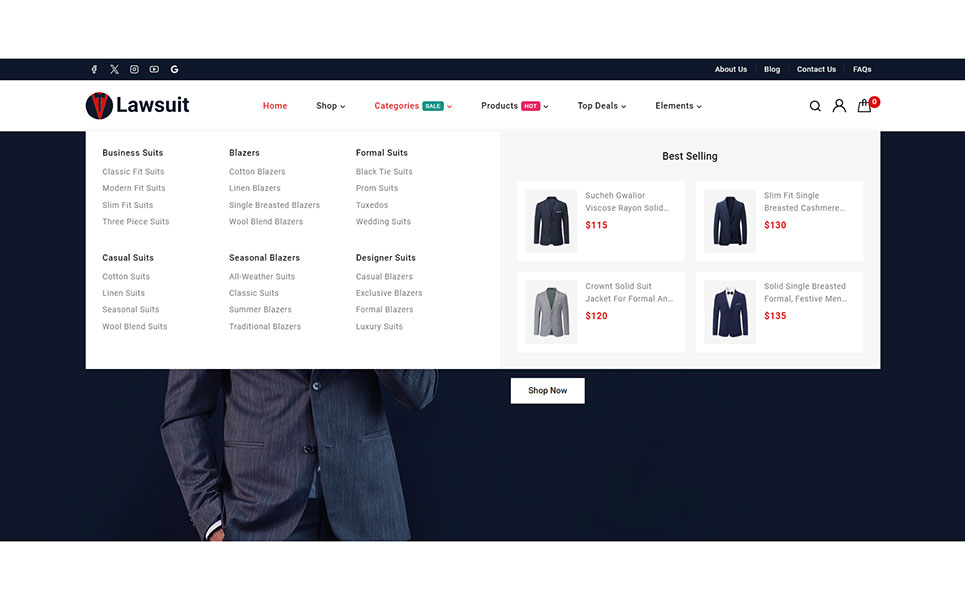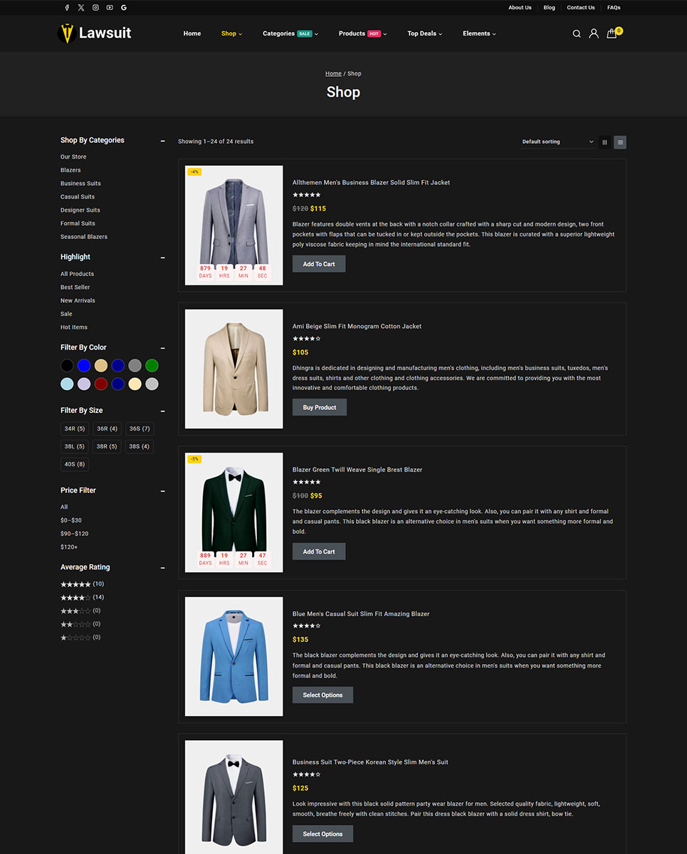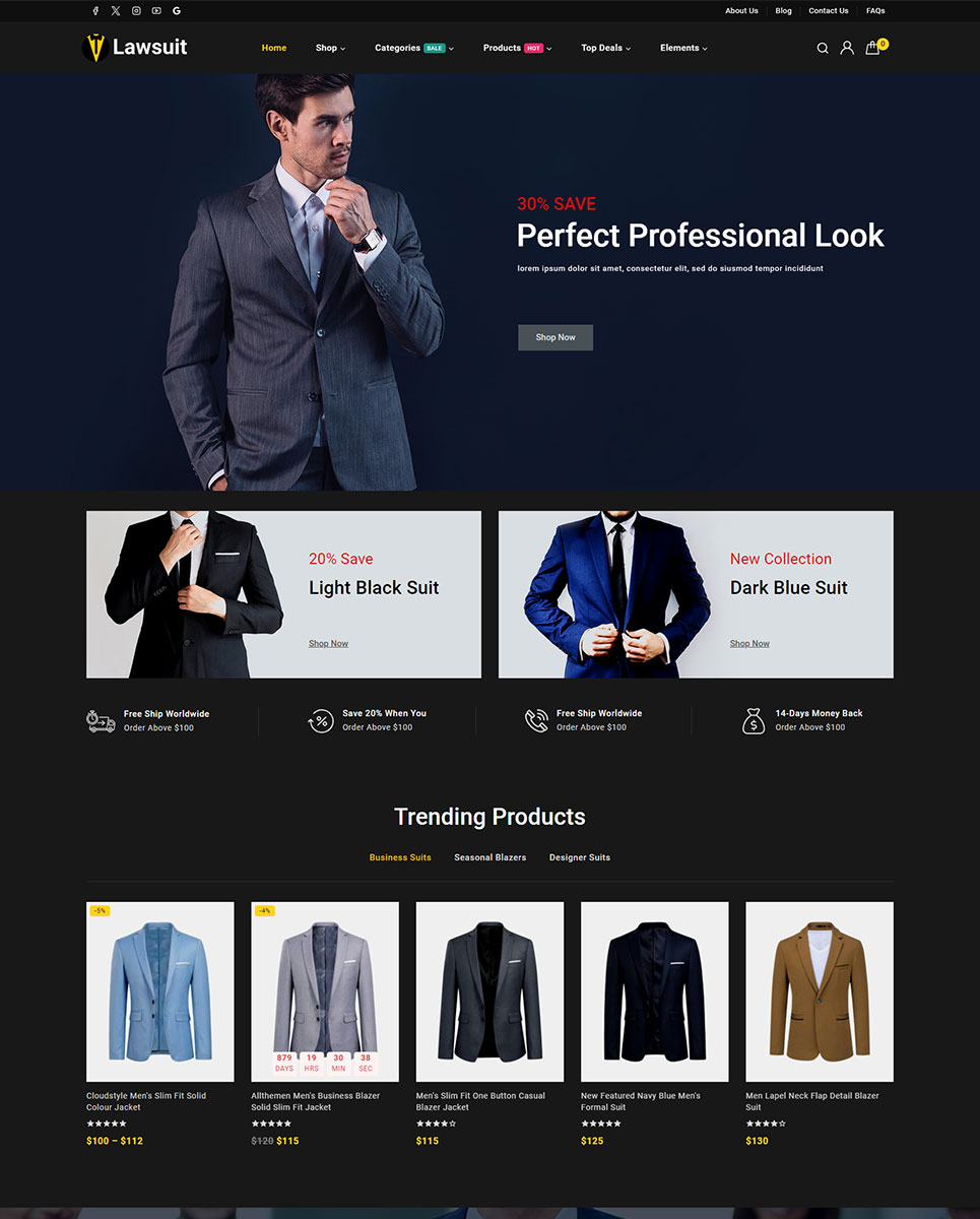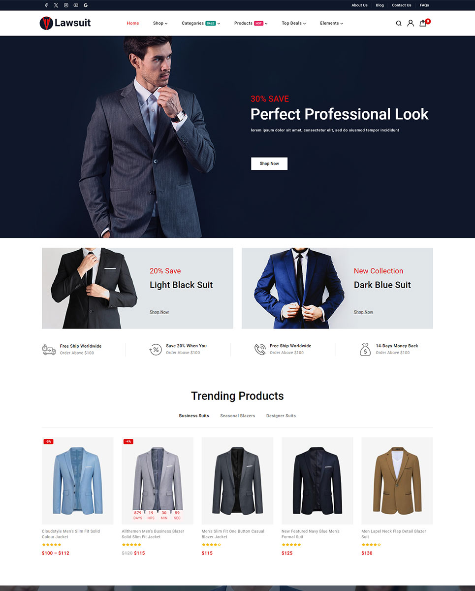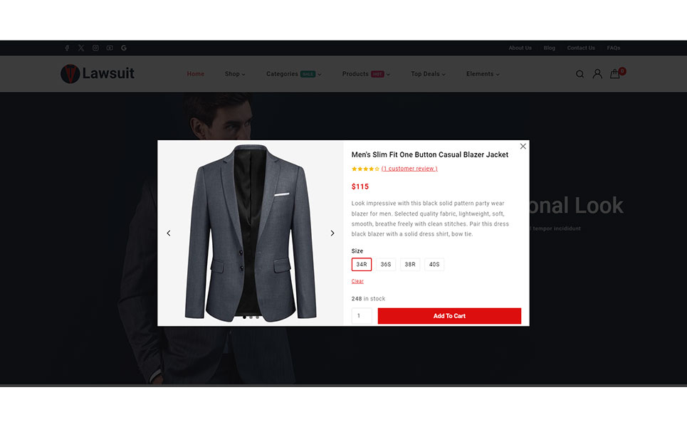 Lawsuit - Suits & Blazers Store Elementor WooCommerce Responsive Theme WooCommerce Theme