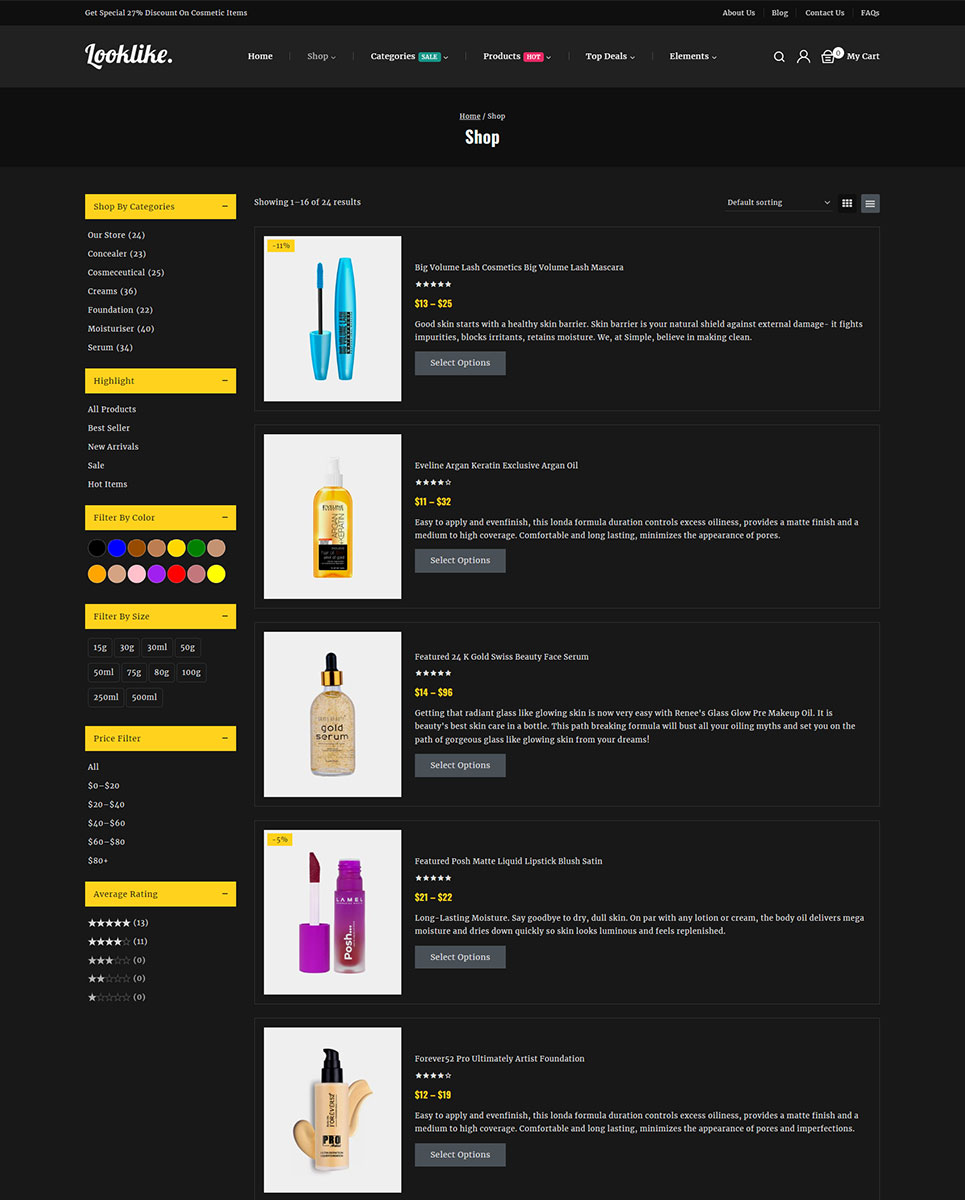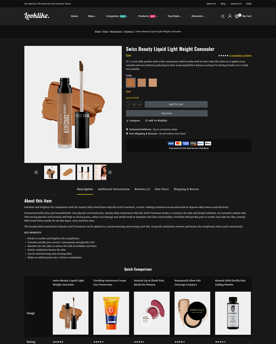 Immerse your customers in a world of beauty and luxury with Looklike's sleek design and intuitive interface. From elegant typography to stunning imagery, every element of the theme is meticulously designed to create a visually captivating experience that reflects the sophistication of your brand and products. Looklike theme is seamlessly integrates with Elementor, WooCommerce, and Revolution Slider to offer users a comprehensive toolkit for building their dream online store