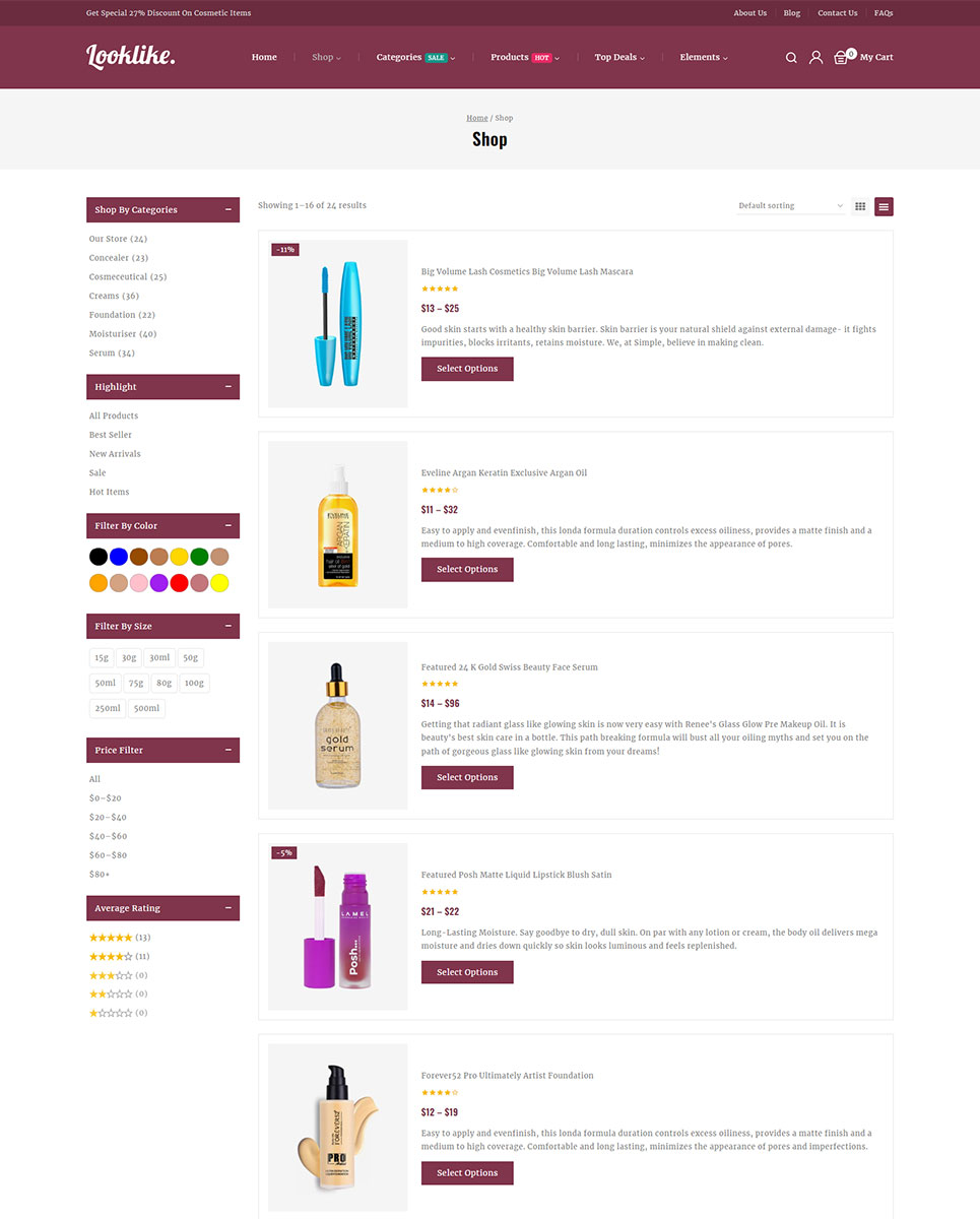Looklike is an exquisite WooCommerce Responsive Theme meticulously crafted for beauty products, makeup items, salons, cosmetic and perfume stores, designed to provide an immersive and luxurious shopping experience for your customers. With its sophisticated design and advanced features, Looklike offers everything you need to showcase your beauty products and fragrances in style and elevate your online store to new heights of elegance and sophistication.