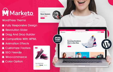 Marketo- ECommerce & Multivendor Marketplace WooCommerce WordPress Theme is in particular designed for several categories of stores for: fashion, accessories, footwears, bags, t-shirts, electronics and gadgets, furniture, sports equipment, toys, nutrition, books, pet shop, and lots of more.