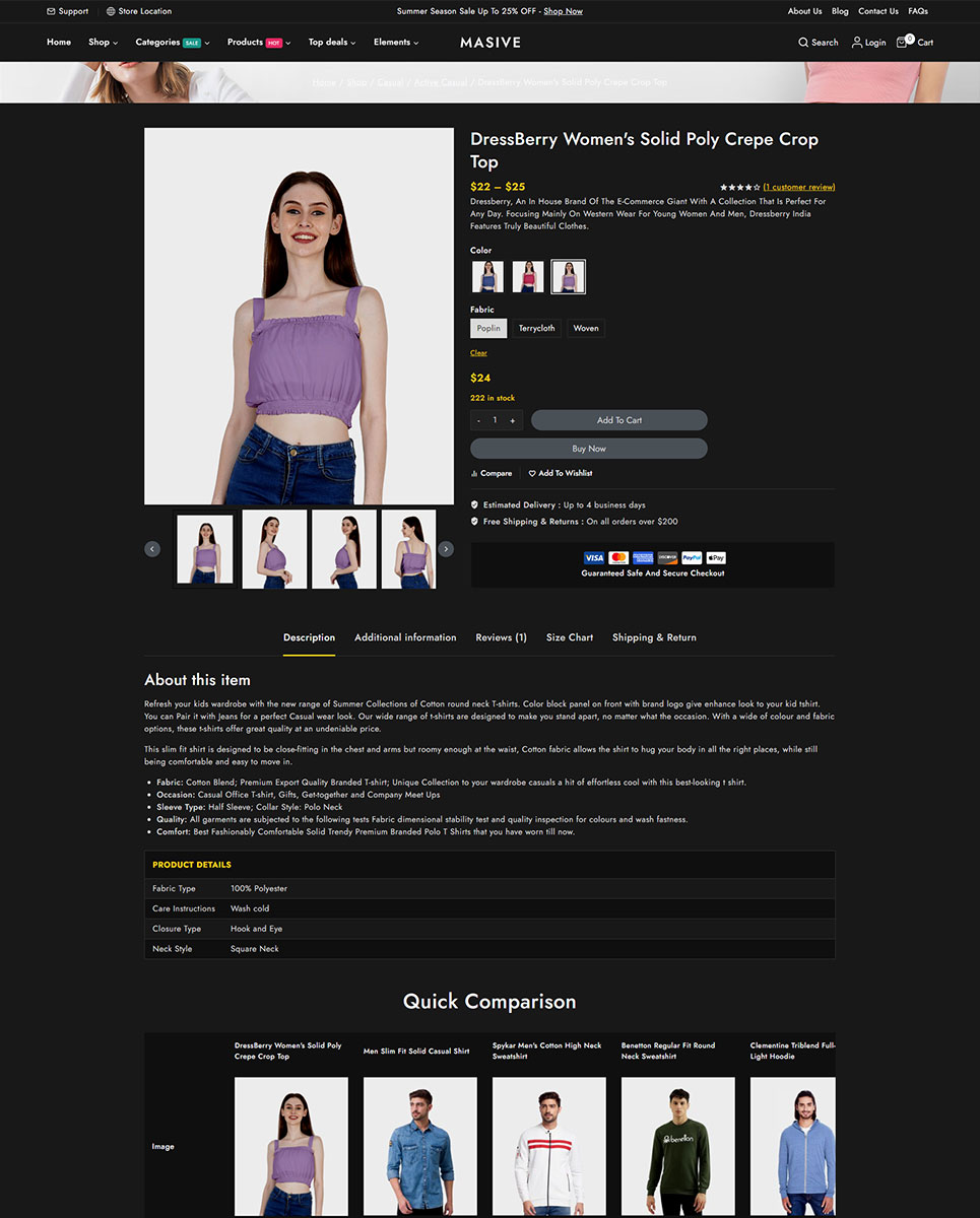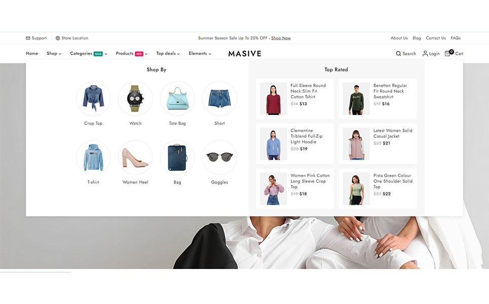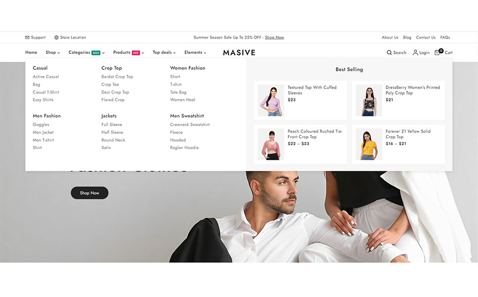 Masive is a cutting-edge Elementor WooCommerce Responsive Theme meticulously crafted for fashion stores and clothing shops, designed to provide an immersive and seamless shopping experience for your customers. Packed with advanced features and contemporary design elements, Masive offers a comprehensive solution to showcase your fashion collections and elevate your online store to new heights.