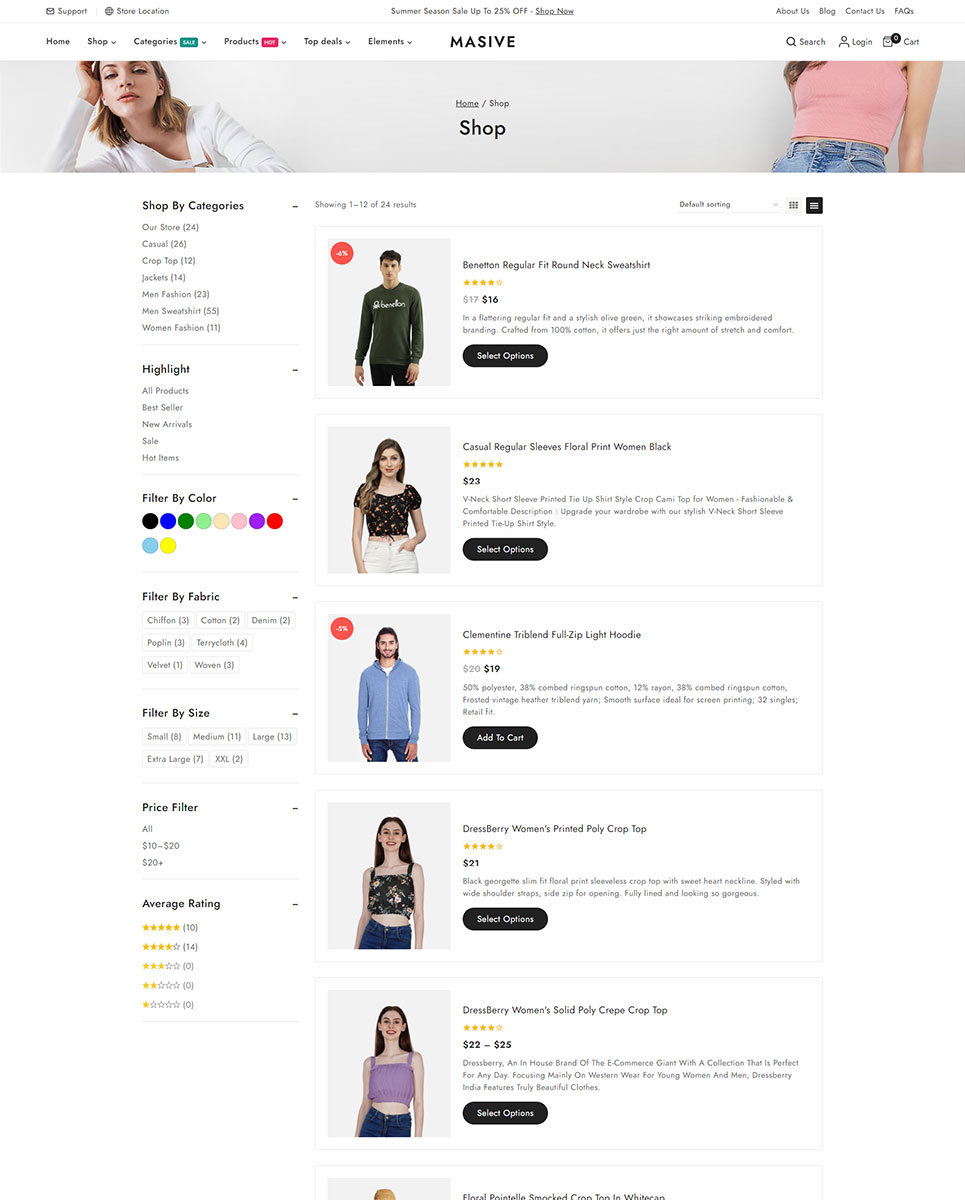 Masive - Fashion Store and Clothing Shop Elementor WooCommerce Responsive Theme WooCommerce Theme