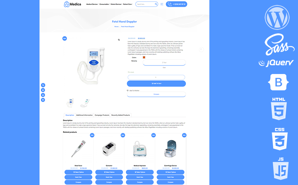 It is a woocomerce theme with superior features where you can sell medical products, medical services, patient supplies and all your medical products.