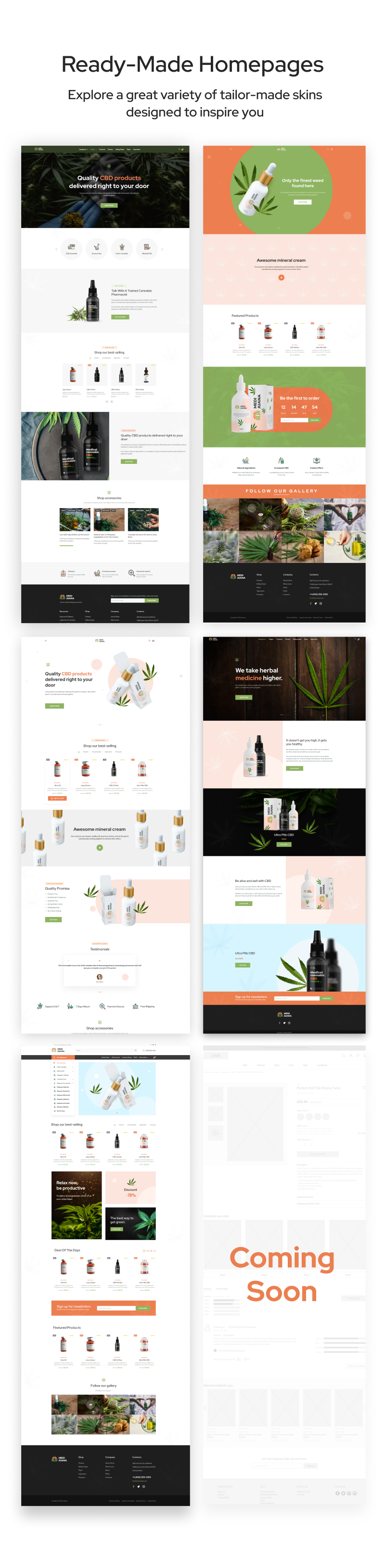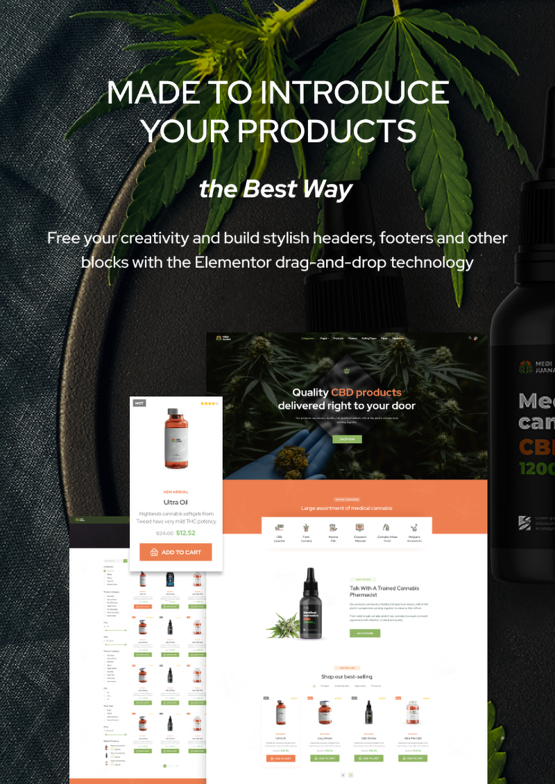 Built with the latest web technologies, Medijuana combines clean design, eCommerce power, and easy customization – everything you need to get your online business up and running fast.