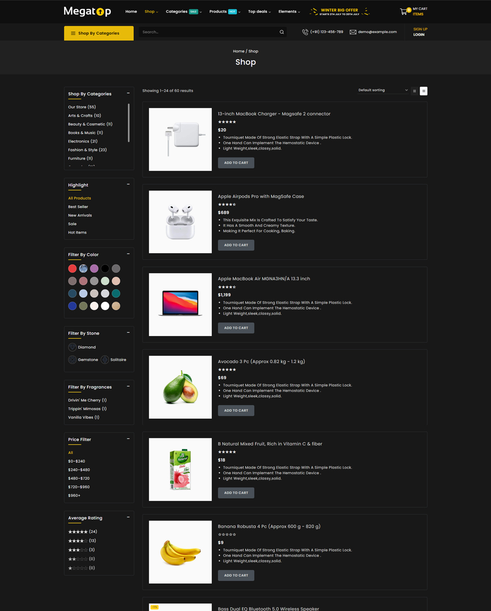 Looking for a versatile, high-performance WooCommerce theme that adapts to any niche? Meet Megatop — the ultimate multipurpose theme designed to power up your online store, no matter what you sell. From Electronics Store Templates and Mobile Store Templates to Sports Store Templates, Spice Shops, and more — Megatop handles it all with style and speed.