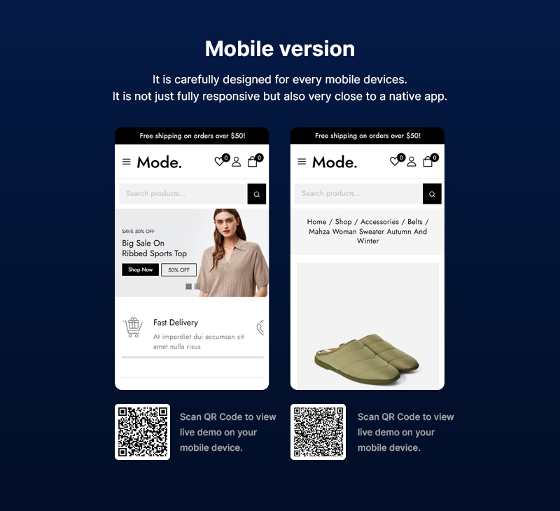 Mode isn’t just about fashion — it’s about making your online store a destination for style. Ready to create a shopping experience that turns heads and drives sales? Mode is the theme to make it happen!