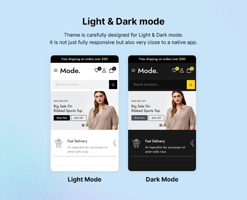 With Mode’s clean layout and intuitive navigation, customers can effortlessly browse categories, discover new collections, and purchase with ease. The theme’s AJAX product filters, quick view, and wishlist functions keep the shopping journey smooth and engaging, while countdown timers add urgency to drive sales on exclusive items.