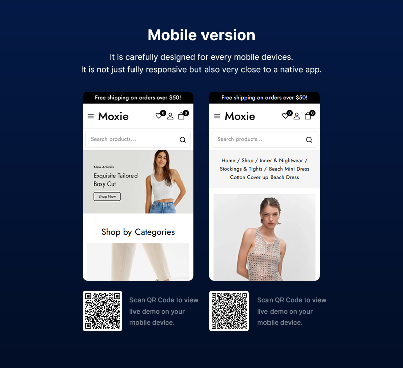 Welcome to Moxie, the ultimate WooCommerce theme designed for fashion-forward online stores. Created by Webdigify, Moxie combines elegance, versatility, and functionality to bring you a top-tier e-commerce experience. Whether you're running a boutique clothing store, a trendy fashion blog, or a comprehensive apparel marketplace, Moxie is your go-to solution.