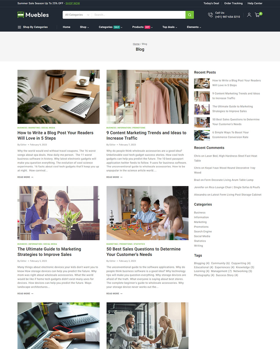 With dedicated sections for furniture categories, room settings, and home decor accents, Muebles offers a platform to beautifully showcase your products. The theme's emphasis on both style and substance creates an environment where customers can easily discover, visualize, and purchase furniture and home decor items.