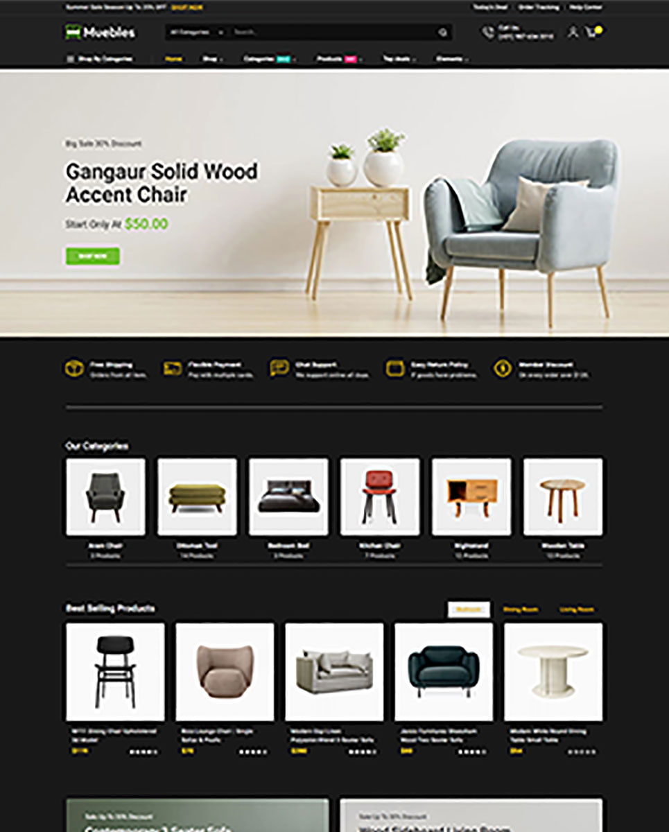 Built with the powerful Elementor page builder, Muebles empowers you to effortlessly craft a unique and visually appealing website without the need for intricate coding. The responsive design ensures a consistent and captivating display across various devices, allowing your customers to browse and shop seamlessly from desktops, tablets, and smartphones.
