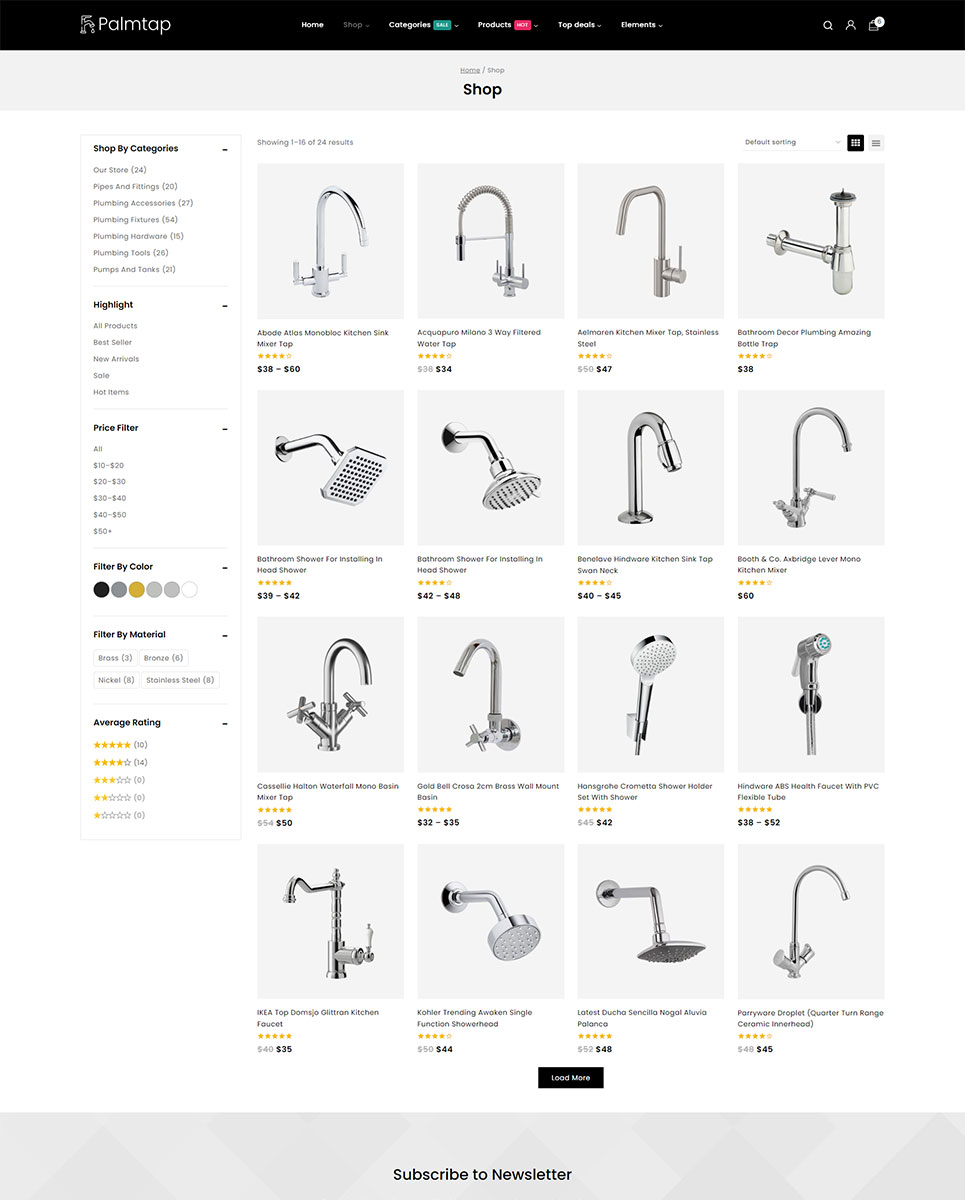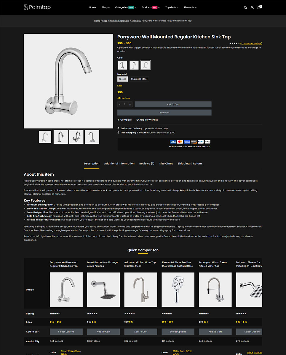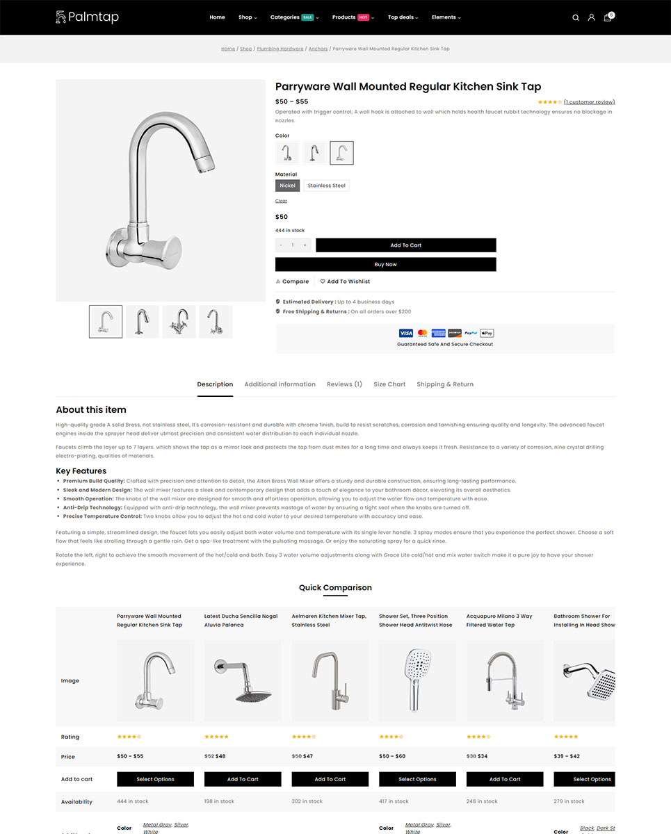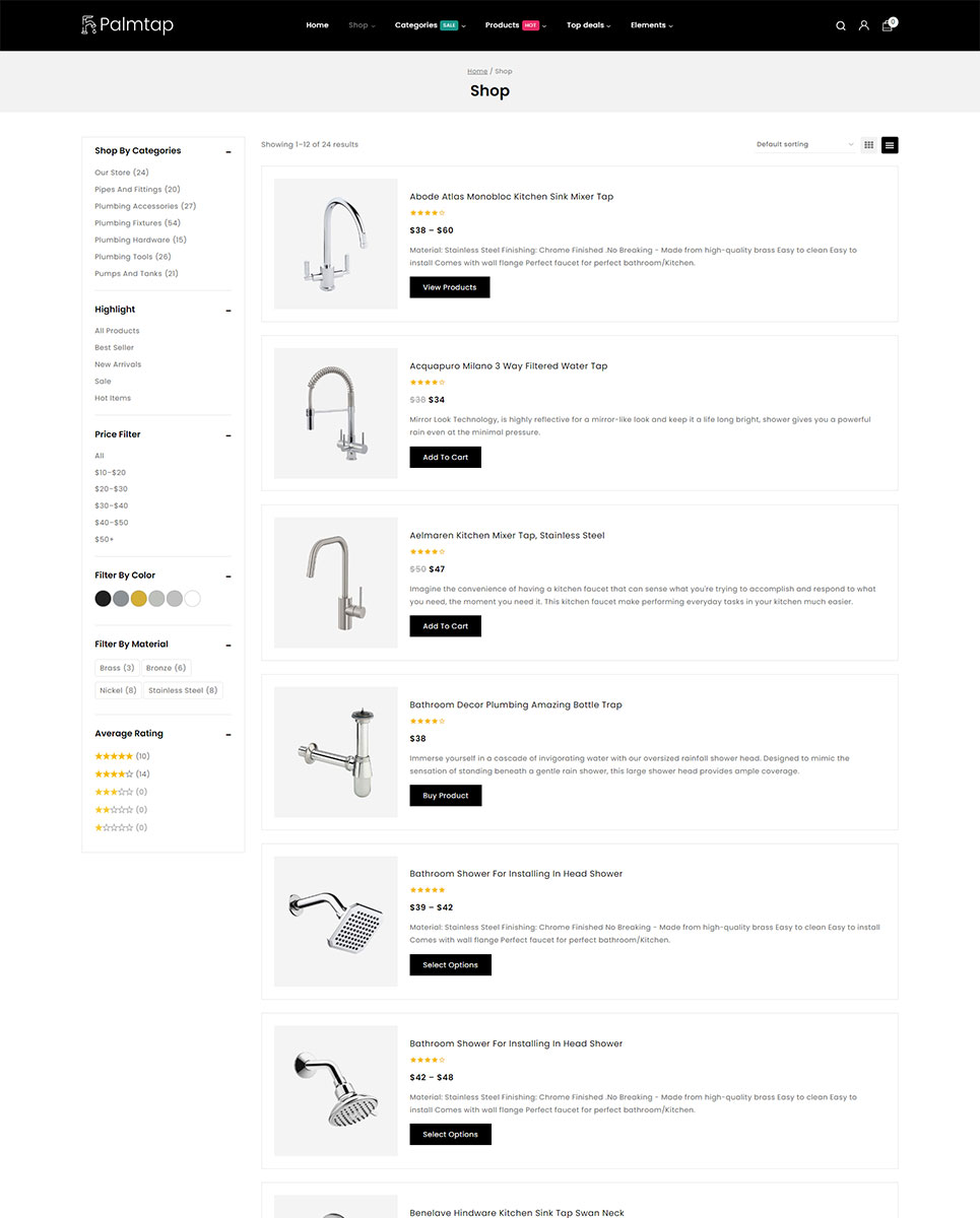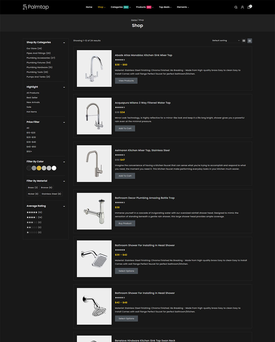 Palmtap - Plumbing Hardware Store Elementor WooCommerce Responsive Theme WooCommerce Theme