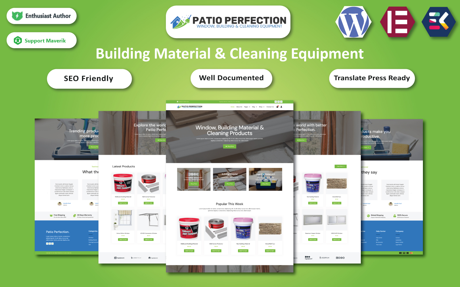 Patio Perfection - Window, Building Material & Cleaning Equipment Elementor WooCommerce Template WooCommerce Theme