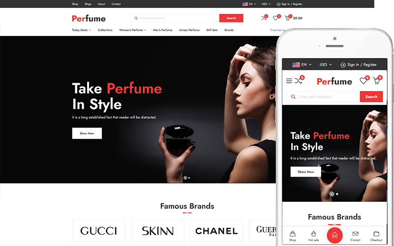 Crafted with meticulous attention to detail, the Perfume theme seamlessly blends modern aesthetics with user-friendly functionality. Its responsive design ensures that your website looks equally enchanting on various devices, ranging from desktops to smartphones, allowing customers to explore your offerings effortlessly.