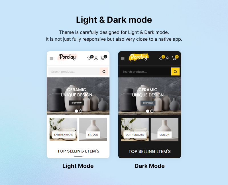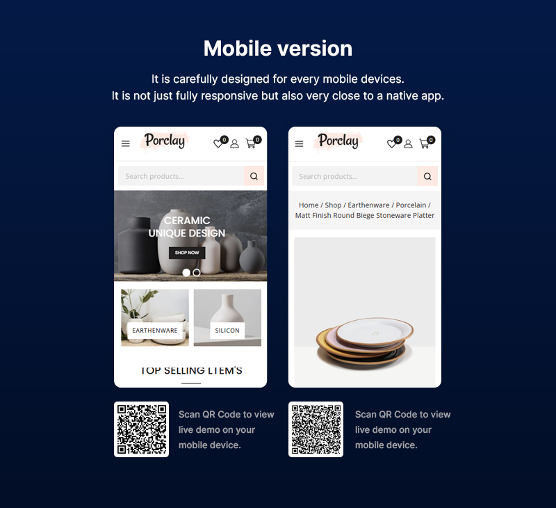 Porclay features a clean, minimalist, and artistic design that puts your products in the spotlight. Its fully responsive and retina-ready layout ensures a seamless shopping experience on any device, from desktops to mobile phones. With carefully chosen typography and smooth animations, this theme creates a refined and modern aesthetic perfect for art and craft businesses.