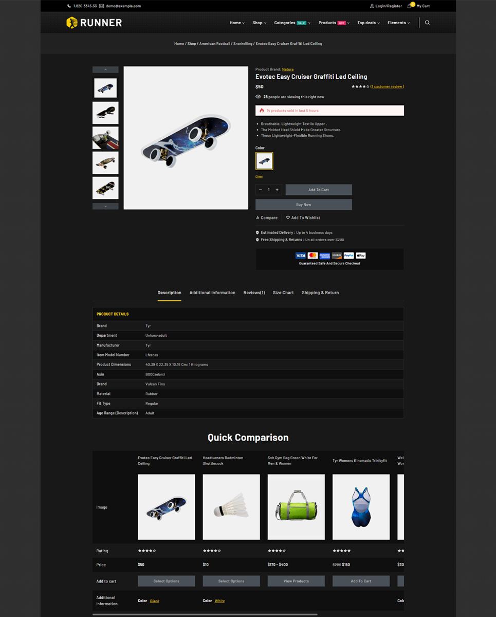 Runner is a bold, high-performance WooCommerce theme designed for versatility. Crafted by TemplateMela, it’s perfect for businesses in diverse niches like Medical Equipment, Sports Bars, Sports News, Motor Sports, Sports Stores, Extreme Sports, and Furniture.