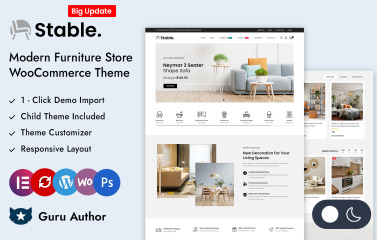 Stable - Modern Interior and Furniture Store is a cutting-edge Elementor WooCommerce Responsive template is specially designed for store like Furniture Shop, Home Decor, interior designer, Handicraft items, Wooden Accessories, Minimal and Multipurpose Store. Theme looks very nice with its clean and professional look. It is also multipurpose which can be used for any types of online store.